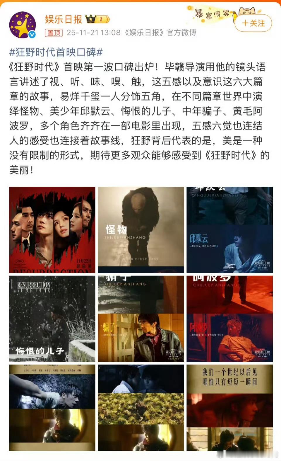 表演张力惊艳全场!跨越时空演绎不同生命力,悬疑、诗意、热血风格自如转换,每个角色都鲜活立体,共情力拉满,实力太绝!