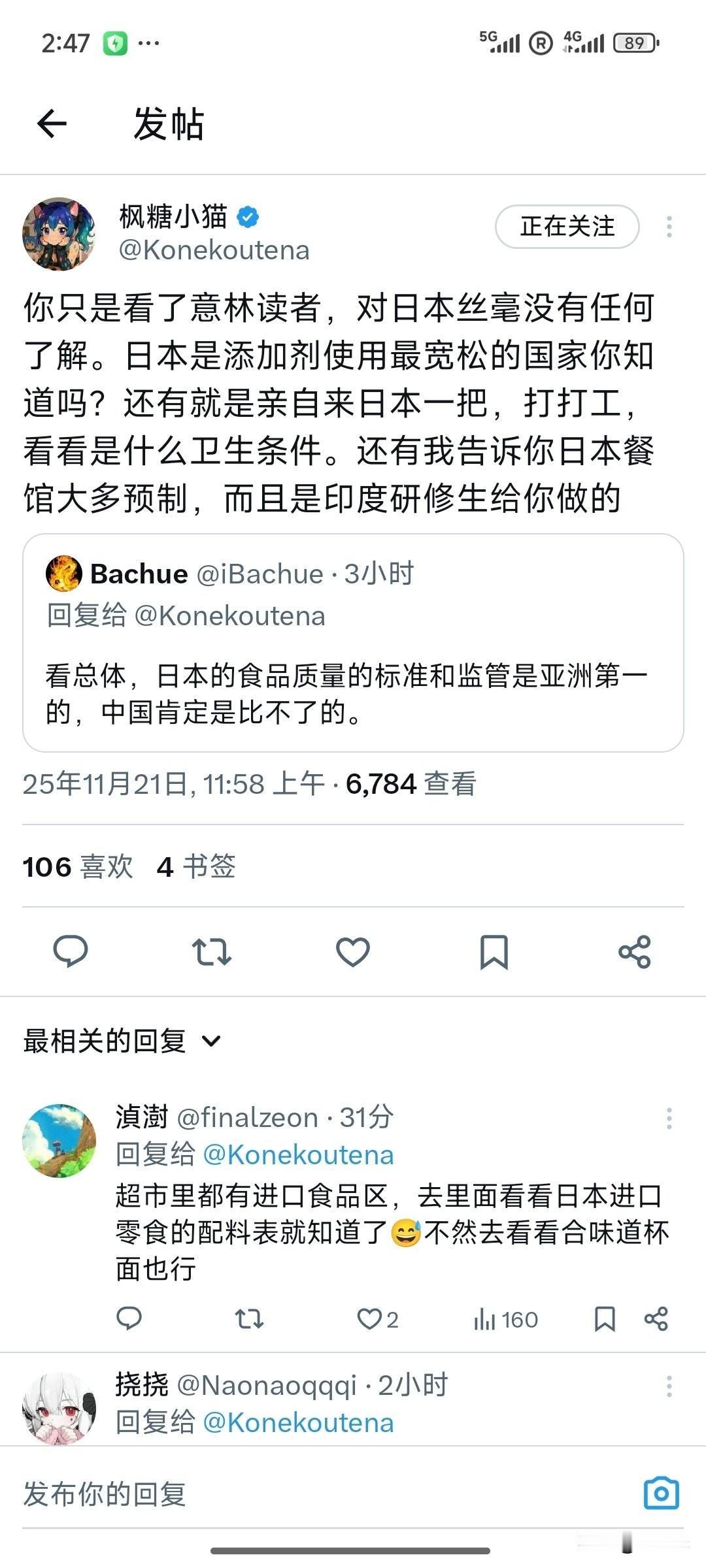 倭国每个月都有食物中毒事件,新闻都报道不知道多少次了,但可悲的是现在依然有不少底层人还信那些洗脑说法。就头两天坐出租车,司机还在说日本食品安全、工作轻松工资高,日本人懂礼貌呢,真的很无语[摊手] 这些真实客观的传播受限好多年了,各个平台只会有意无意对无脑吹捧国外的视频主动推流[抠鼻]日本食品安全 抵制日本食品