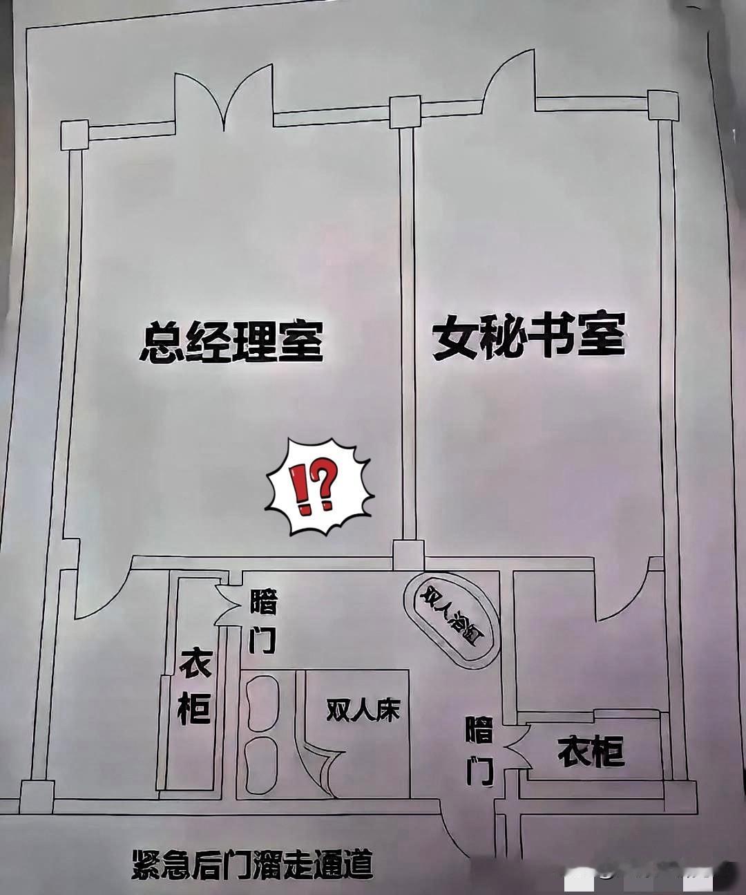 这个“办公”布局可太离谱了! 表面是总经理室+女秘书室的正经办公区,暗地里却藏着暗门、双人床、双人浴缸,甚至还有“紧急后门溜走通道”—— 把职场空间偷换成私密场所, 打着办公幌子搞暧昧, 既突破职场伦理底线, 也暴露了低俗的权力滥用心思。 这种设计把工作场所变成暧昧温床, 满是对职场女性的不尊重, 离谱又恶臭, 完全是把职场当成了私人猎场的龌龊心思具象化, 看得人直皱眉头。 友友们你们怎么看,欢迎评论区讨论。。。 办公室 办公室座位 办公室布局 办公区设计 独立办公室设计 小众办公室设计 大户型办公室