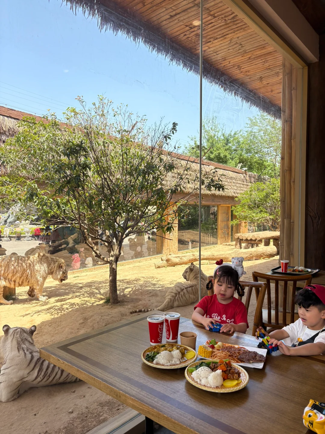 不藏了‼️‼️ 武汉出发1.5h就能抵达“疯狂动物城”🦓 住进冰雪大城堡🏰,和长颈鹿一起吃早餐🍳 去大草原探险、和卡皮巴拉、小熊猫、大象亲密互动 这里是集动物园🦒、游乐场🎠、海洋馆🐟一体的:《银基动物王国👑》 - 🚄【出行攻略】: 🚄交通:高铁1.5h抵达郑州东,打车40min到酒店 ⏰时间:10:00-19:30(五一时间:9:00-21:00) 🏨【住宿】: 入住银基冰雪酒店,蓝色的城堡很梦幻,酒店里就能喂长颈鹿、梅花鹿、羊驼等,主题房间也很适合小朋友,入住酒店可提前30min入园‼️ 🗺️【游玩线路推荐】: 迷失河谷➡️酋长之家➡️草原探险基地➡️看剧场(海狮剧场、动物百老汇等)➡️喂卡皮巴拉、小熊猫等➡️下午玩游乐设备(奇幻世界、巨龙山谷)➡️生命之树烟花🎆 🎢【游玩攻略】: 1️⃣入园后,左手边是动物王国区域+海洋世界,右手边就是游乐区域,动力项目和无动力的项目都有 2️⃣园区真的很大,可以自带或者租儿童手推车 3️⃣园区有好几个餐厅,我们去的泰哥餐厅,靠窗的位置可以“和老虎一起用餐”,近距离观察👀老虎 4️⃣进门先冲左手边的迷失河谷,可以拍到没人的水族馆🧜 🦋【游玩项目】: ✔️迷失河谷:这里有海底隧道,是一个很出片水族馆 ✔️酋长之家:坐老虎大巴车🚍看丛林猛兽,亲子投喂‼️ ✔️草原探险基地:乘坐水陆两栖车进入“非洲大草原”🦓,可以坐在车头,喂长颈鹿斑马等 ✔️奇幻世界:萌宠乐园,在这里可以投喂小熊猫、卡皮巴拉、羊驼、小香猪🐷等 ✔️奇幻盒子:小朋友的快乐天堂,在室内,低龄宝宝友好!!中午太阳大可以来这里 ✔️奇幻烟花秀🎆:在门口的大树那,晚上19:00绝美烟花秀! -