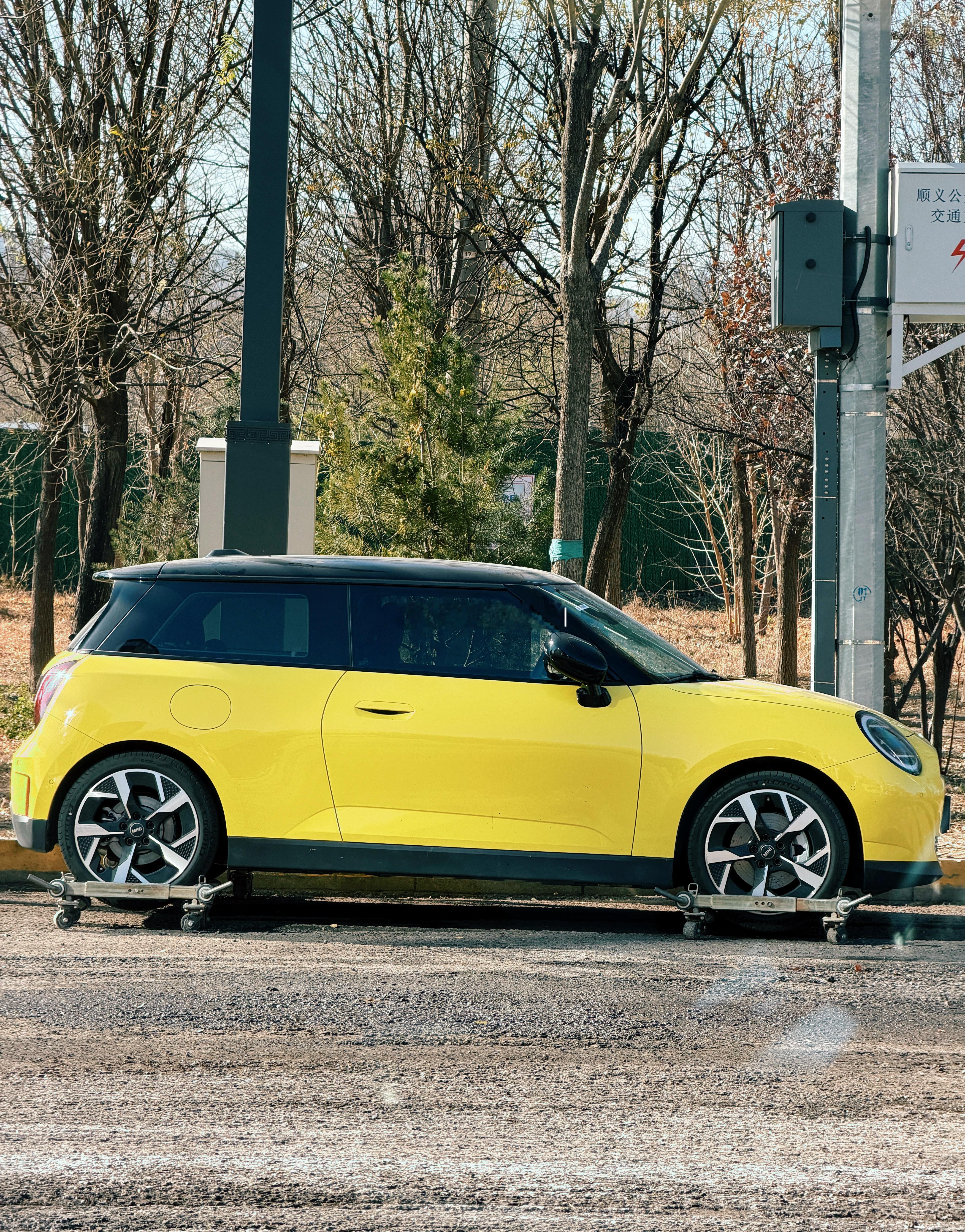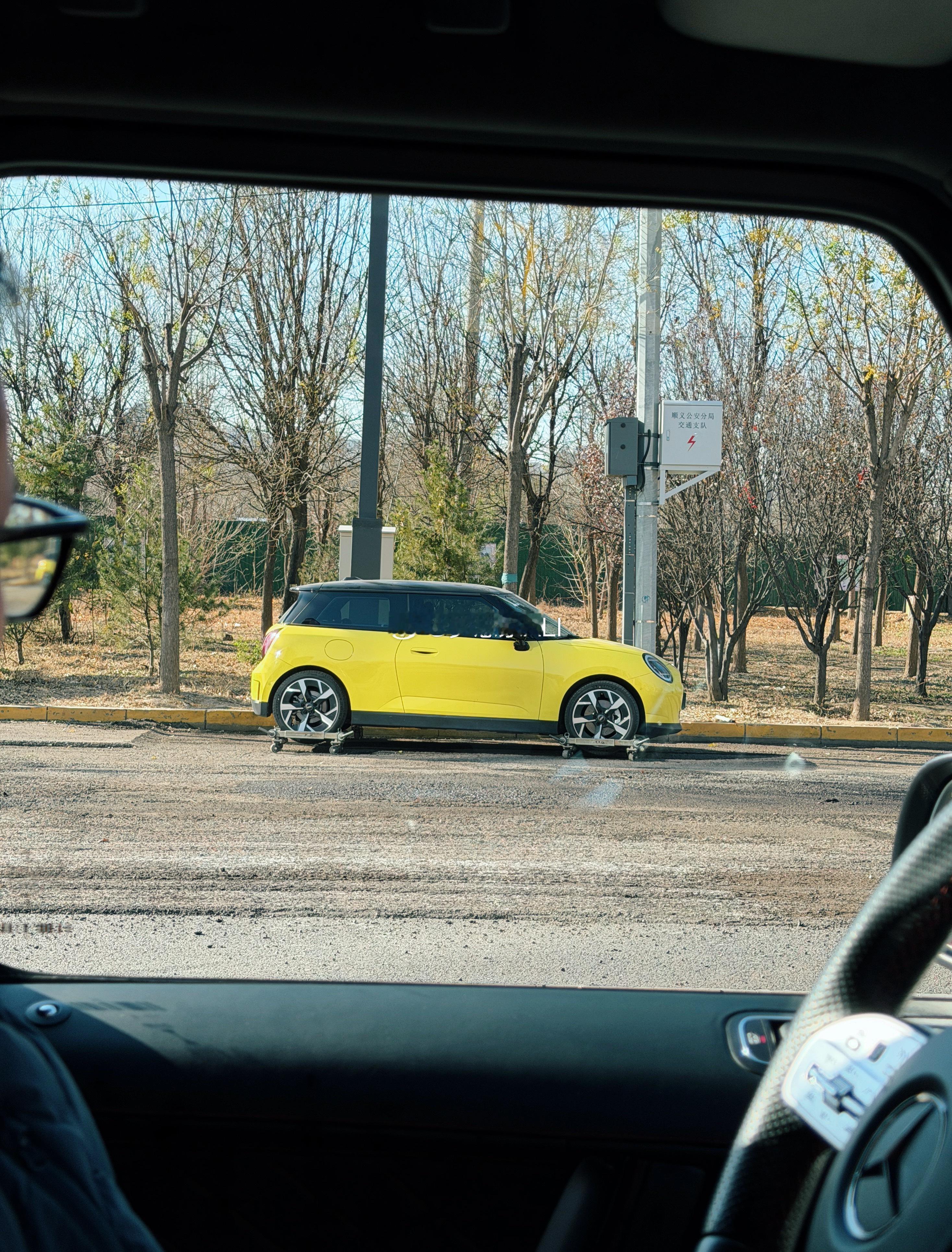 穿着旱冰鞋🛼的小MINI~估计是修路联系不上车主,只能用移车器挪走了🤣