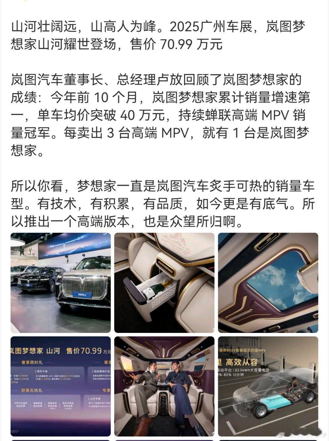 山河壮阔远,山高人为峰。2025广州车展,岚图梦想家山河耀世登场,售价70.9