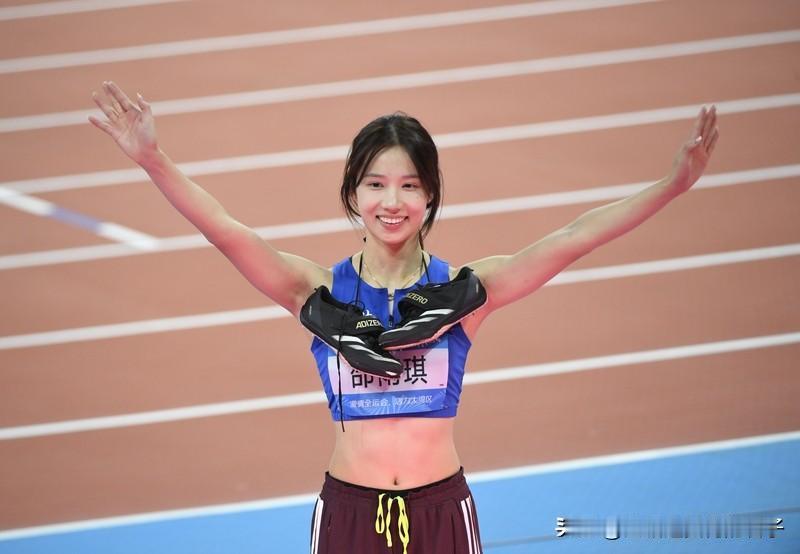 邵雨琪的跳高水平相当厉害。她2002年出生于武汉,六年级接触跳高后就展现出天赋。在钱振华教练指导下系统训练六年,凭借脚踝细、小腿长的身体条件和不怕吃苦的劲头,2017年就拿下全国中学生运动会女子跳高组冠军。 在11月18 - 19日的全运会女子跳高决赛中,她以1.90米的平个人最好成绩夺冠,完成了从上届全运会第八到本届冠军的华丽转身。此后她还登上全国田径锦标赛、德黑兰亚洲室内田径锦标赛等舞台,实力不容小觑。