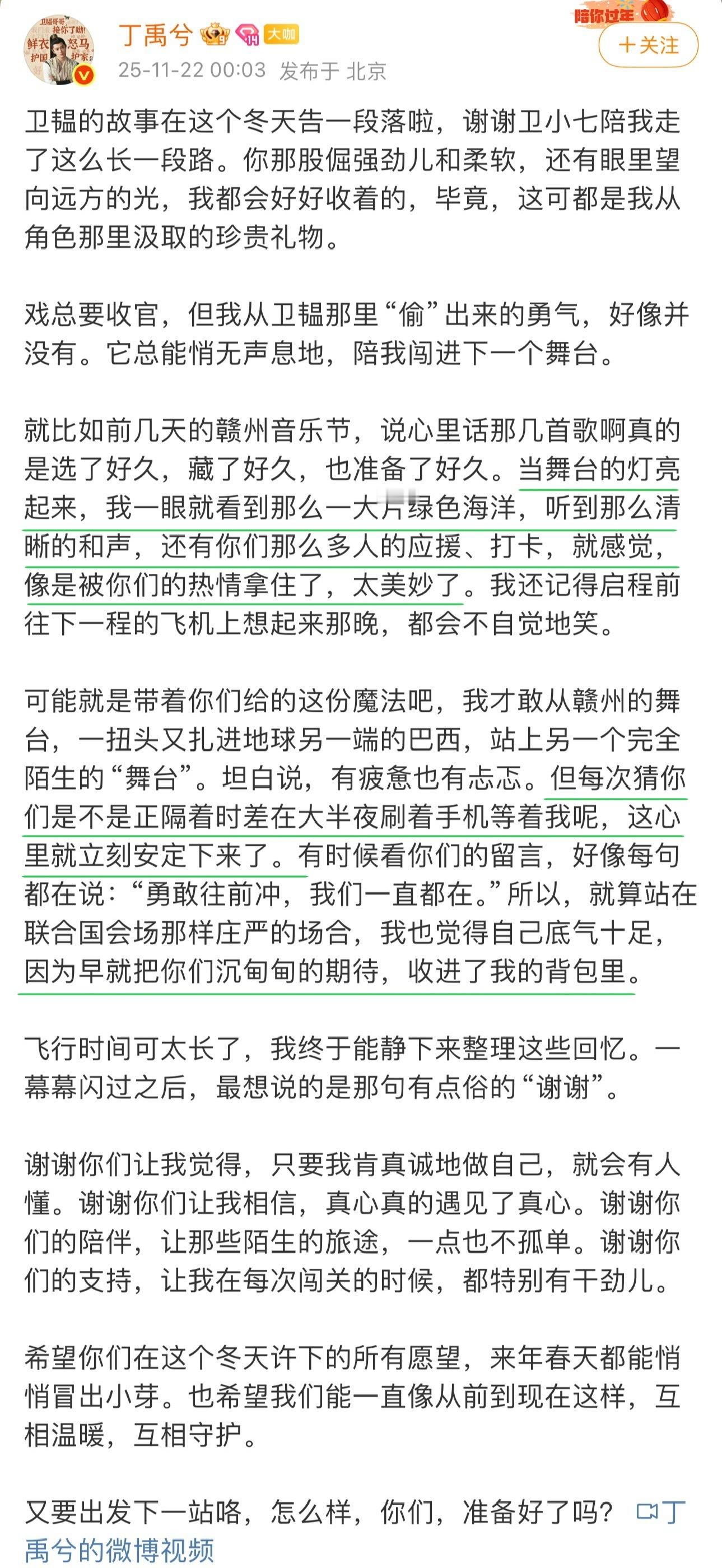 我的天呢,每一个字都能感受到爱,这是丁禹兮写给粉丝的情书吧💌