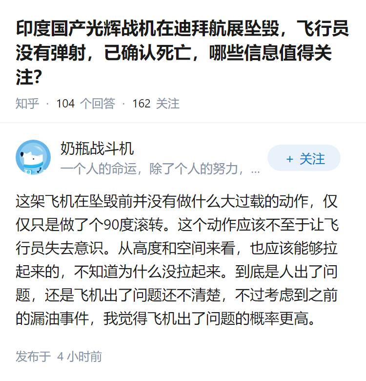 印度国产光辉战机在迪拜航展坠毁,飞行员没有弹射,已确认死亡,哪些信息值得关注?