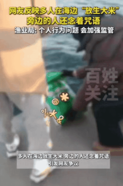 辽宁,一女子到海边玩,突然发现几个大妈鬼鬼祟祟,在往海里倒着什么!她很好奇,以为他们在倒垃圾,结果凑近一瞧,他们竟然是在倒大米,说是在“放生大米”,口里还在念咒语!听过放生鱼,放生动物,头一回听到放生大米,真是大千世界无奇不有! 几位中老年人手脚麻利地拆开一袋袋包装完好的大米,嘴里还念念有词,像是在进行某种仪式。旁边一位短发女子正好挂断电话,她对家人说“在海边,刚放生呢”。 这一幕发生在11月20日的辽宁葫芦岛一处码头。拍下视频的女子简直不敢相信自己的眼睛,她原本以为这些人在偷偷倾倒垃圾,没想到是在“放生”粮食。 葫芦岛市海洋与渔业局工作人员第二天作出回应,说这是个人行为,把大米倒入海中,不仅浪费粮食,还可能对海水造成污染,大量大米在海水里分解会消耗氧气,可能会影响水质和海洋生物。 这种所谓的“放生大米”行为,在宗教经典中根本找不到依据。放生本是为了拯救生命,大米作为食物,如何能算作生灵? 那些参与“放生”的人或许认为自己是在积德行善,他们可能没想过,这些大米如果送给需要的人,是不是更能体现善心? 与其把大米倒进海里,不如送给饥饿的人,这样的善举才更有意义,真正的善行应该建立在尊重自然、珍惜资源的基础上。 各位读者你们怎么看?欢迎在评论区讨论。