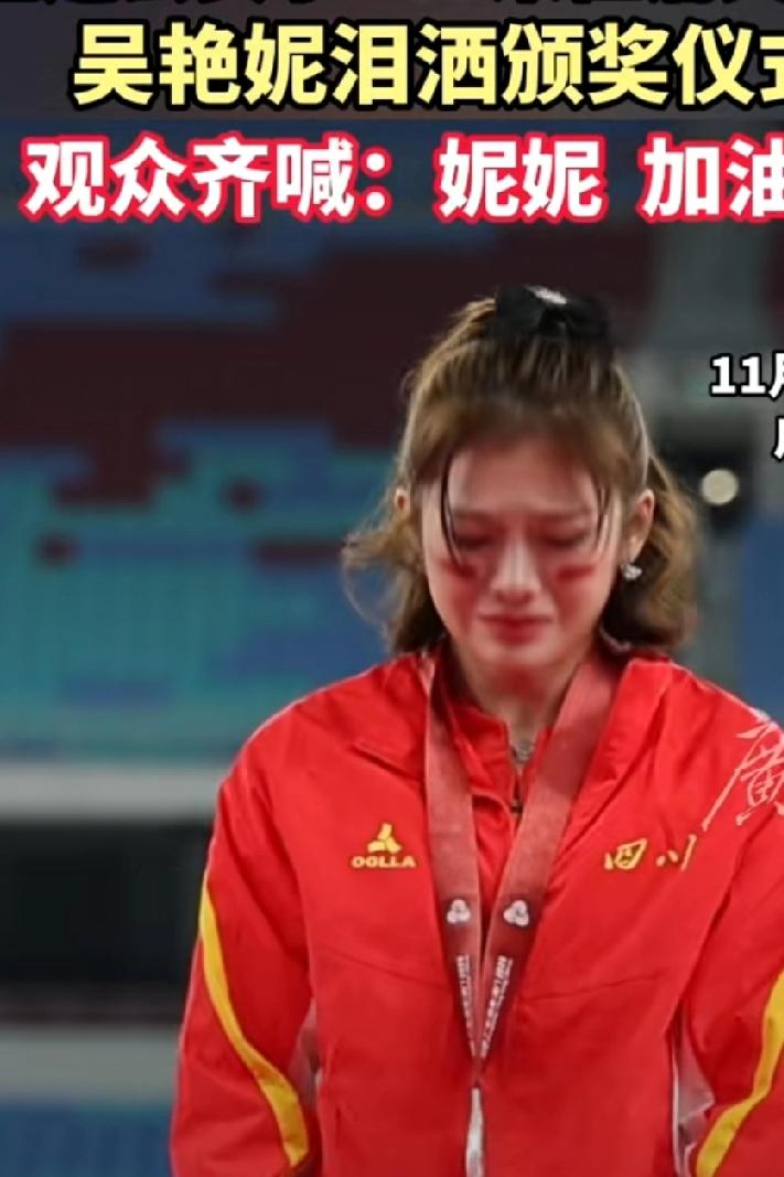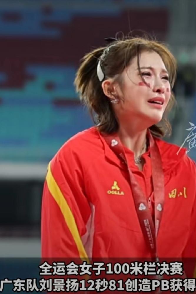 她站在领奖台上不是激动的喜极而泣而是不甘心屈居亚军难过的痛哭。 她是最美最飒最自信的,她面对媒体十分自信的表示:全国乃至亚洲只要不失误,冠军就是她的。 四年一次的全运会100米跨栏,她比刘景扬慢跑了0.04秒屈居亚军,她心想又失误了哭的很伤心,教练在她身边好言相劝没有效果,只能无奈的看着她哭。 颁奖典礼,金牌挂在不被人看好的刘景扬脖子上,实在是伤心,忍不住又哭了。 吴艳妮别灰心,下个比赛不要失误夺冠军。 这场比赛我没看到吴艳妮失误,友友们她100米跨栏失误了吗?