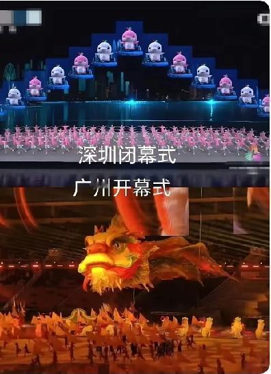 无对比不直观!同属广东,广州开幕式以中式审美+科技感的鳌鱼惊艳出圈,深圳闭幕式却因开场广播体操显仓促,即便兼顾科技与文化,差距也一目了然!
