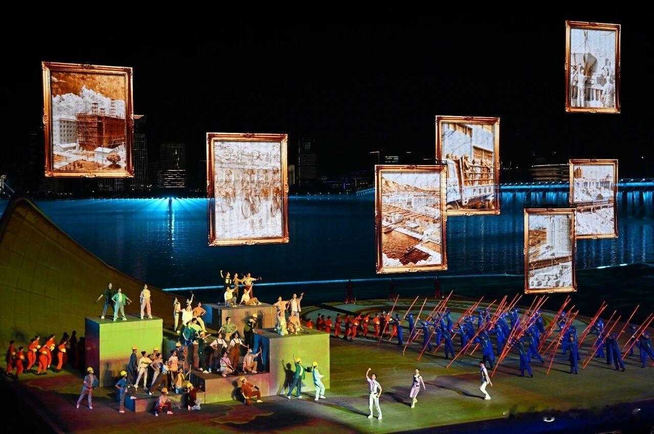 大湾区宛如一轮红日,喷薄而出。十五运闭幕式在前海湾欢乐剧场结束,3个场景让人惊叹:开篇的广播体操;海水中的奔跑;无处不在的影幕。 本来以为,深圳这么前卫时尚的城市,一上来应该就是出手不凡,眼花缭乱,不料却是从海面上升起了一张白纸,留白,任人挥洒,然后是人人耳熟能详的体操,质朴无华,与全运会的节奏浑然天成。 提到海水,更值得说道了。须知,这里曾经是个浑浊不堪的海湾,时不时会漂过来一条挣扎沉浮的鱼、枯枝败叶、蓝藻之类的。短短数年间,海水经过持续不懈的治理,变得如此湛蓝、纯净,堪与维多利亚港媲美。 @深圳跋涉者 啧啧称奇的是影幕,很多人以为是挂绳悬挂在两侧的护栏,谁料那竟然是高科技的产物。 它是深圳献给全球的首个“城市全景闭幕式”重要的组成元素:液态画布,与裸眼 3D、智能穿戴、5G 云控、无人驾驶等产品共同构成了一个最新科技的秀场。 旭日东升,潮涌大湾。一枝竹仔会易折弯,几枝竹一扎断节难。团结就是力量,众人划桨开大船,粤港澳联手举办全运会仅仅只是一个开始,好戏在后头呢!