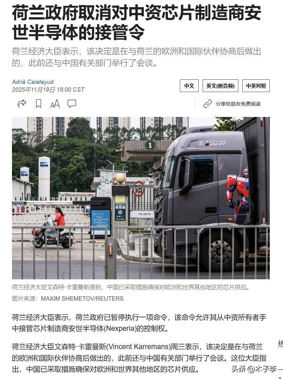 想抢劫我们海外资产未遂,所以先暂停看美国主子给啥指示 没有能力善后的抢劫就是个笑话,咱们还得追究荷兰造成的损失。 禁止进口三文鱼没多久,拿炸药奖装B的国家向东大跪了;2025年年初,懂王挑起关税战,结果,懂王跪得比世界想象得早——欧美白癖没落了荷兰安世事件 制裁荷兰