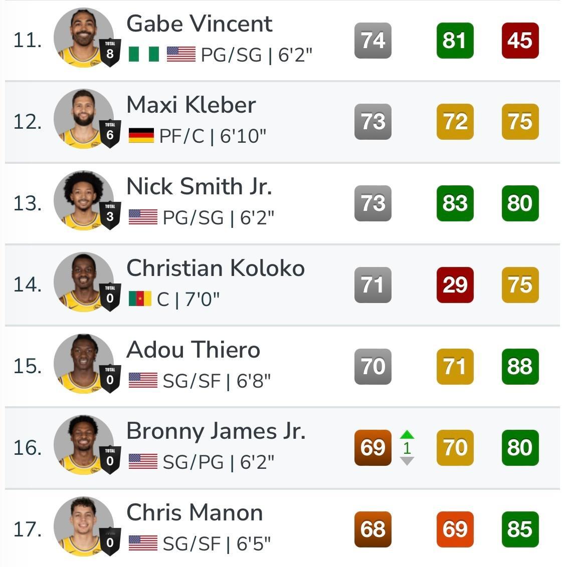 湖人队最新2K能力值:艾顿+2,拉拉维亚-1,布朗尼+1,其余不变。
