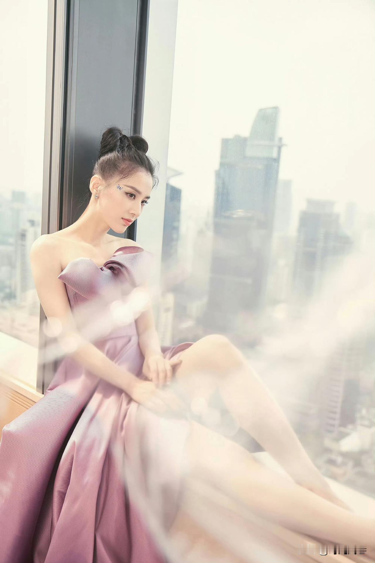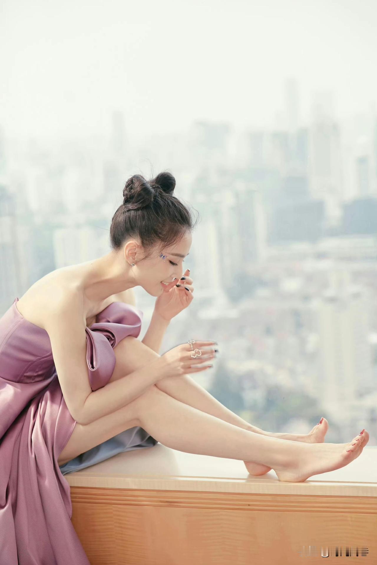 黄圣依可爱丸子头搭配紫色裙装,清纯甜美,仙气飘飘!