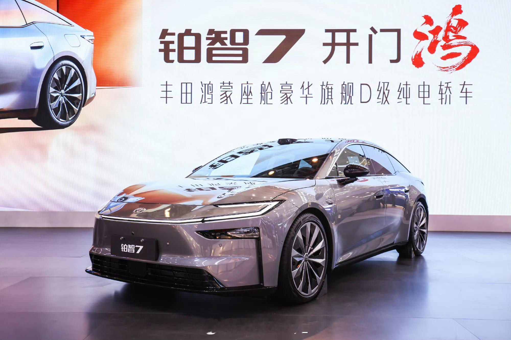 在2025广州车展推出丰田铂智7重磅纯电新车,展台被围得水泄不通,定位D级豪华纯电轿车。从等资料看,这款车有几个突出特点:车身尺寸很大(车长5130mm,轴距3020mm),设计上采用溜背造型和无框车门;首次搭载华为鸿蒙座舱5.0系统;配备"豪华新三件"——双腔空气悬挂、激光雷达智驾系统;还有零重力座椅等豪华配置。厂家首创"三担责"政策,承诺承担电池自燃、电池衰减和智能泊车事故的责任。促销政策上,显示年底前预订可享受购置税兜底。