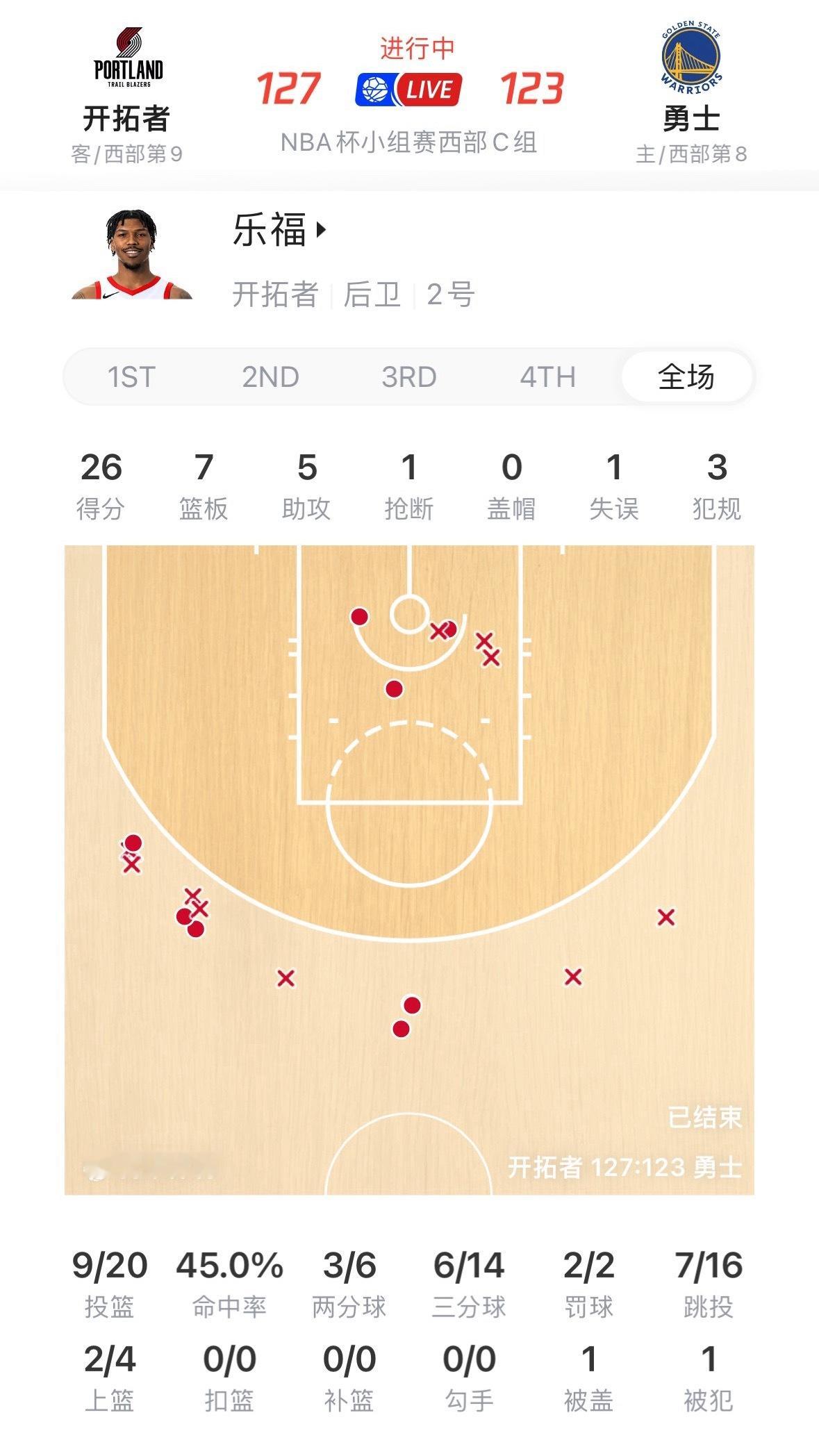 开拓者4人得分超20分,克林根20+10,杨瀚森被DNP,库里空砍38分