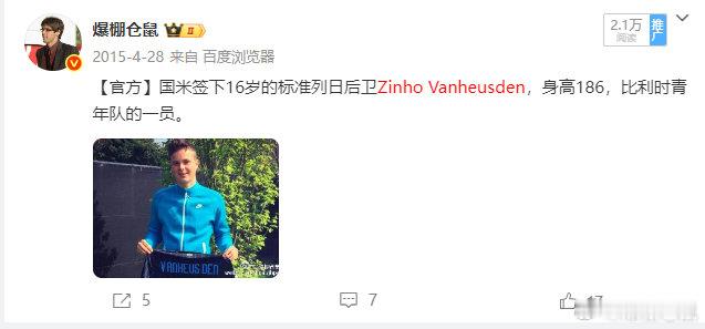 【挂靴退役】26岁的比利时后卫范赫斯登(Zinho Vanheusden)宣布挂靴退役,职业生涯遭遇过3次十字韧带断裂的重伤,在国米待了很长时间却没有为一线队踢过球,翻出了他2015年加盟国米的新闻,伤病如虎,太可惜了!