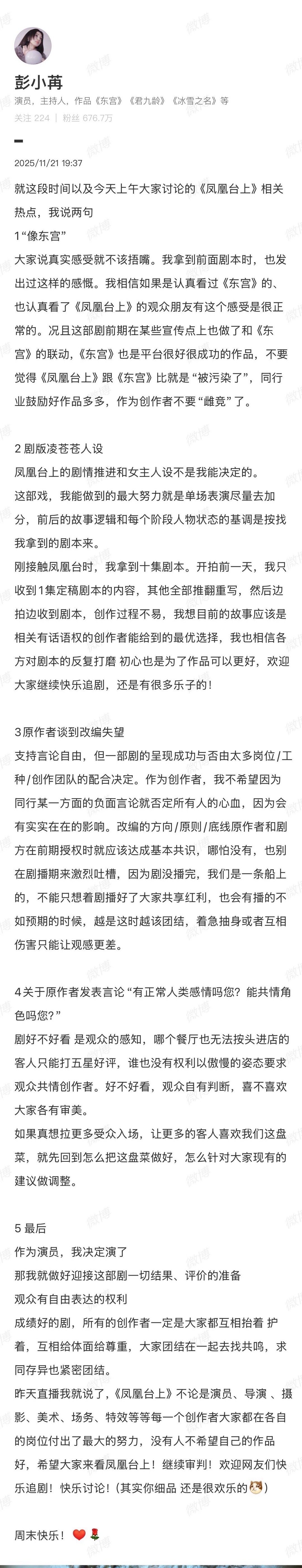 谁能懂凤凰台上原著作者语言表达能力竟然还不如彭小苒