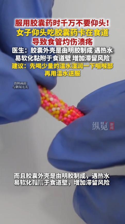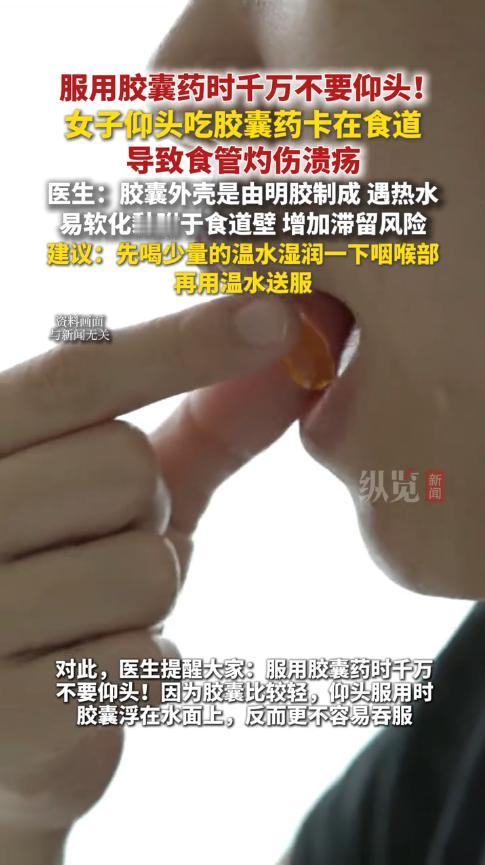 悲剧还是发生了!近日,云南,一女子生病吃胶囊,仰头吞咽时,胶囊却卡在了食道内,本