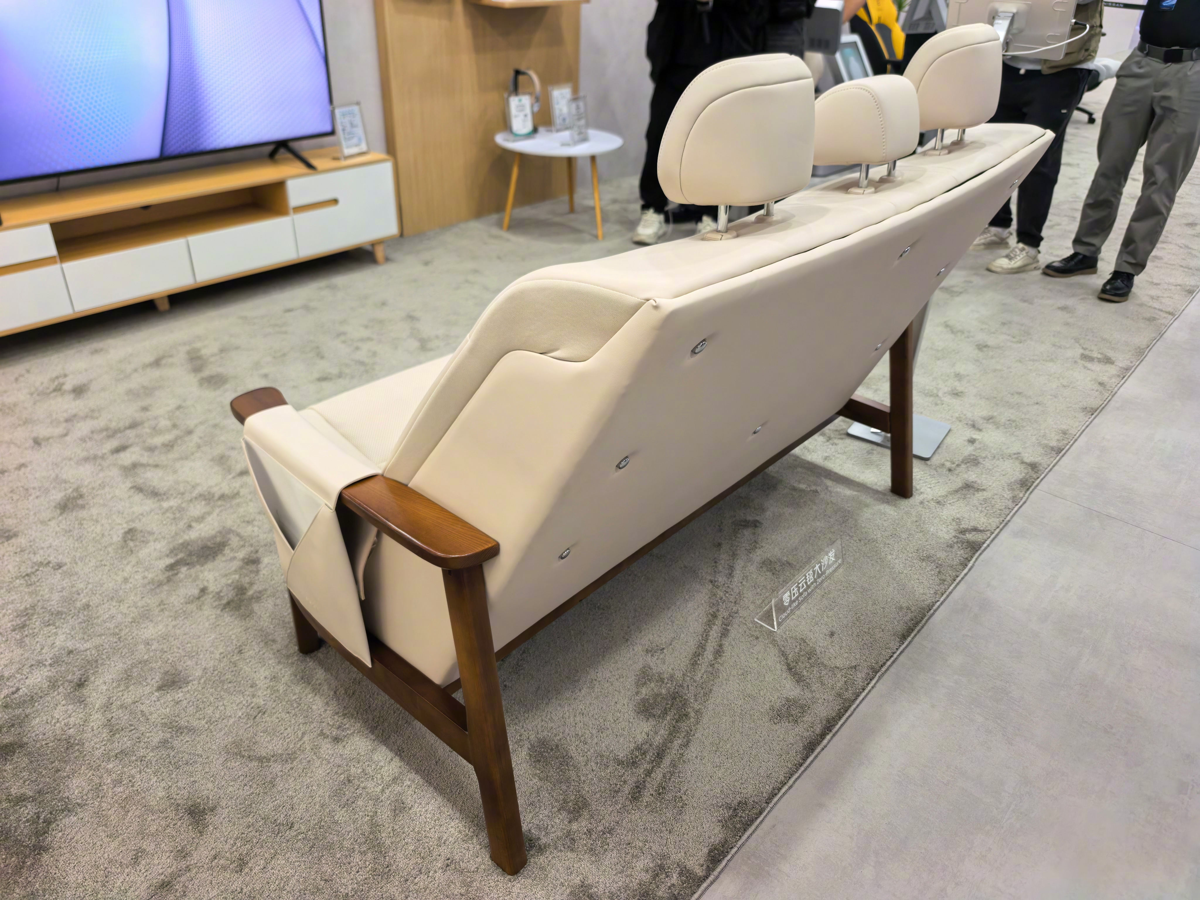 东风日产太逗了,用N6后排座做了个家用沙发。这真是汽车座椅拆下来做的家用沙发,并且以后要正经上架销售。我坐了一下,正经很舒服!皮子很软,海绵也舒服!并且因为车规级,做工用料极为极为扎实!碾压市面家具沙发。绝对环保,不会是那种破弹簧、甲醛海绵那种垃圾家具用料。有点意思,想拥有。