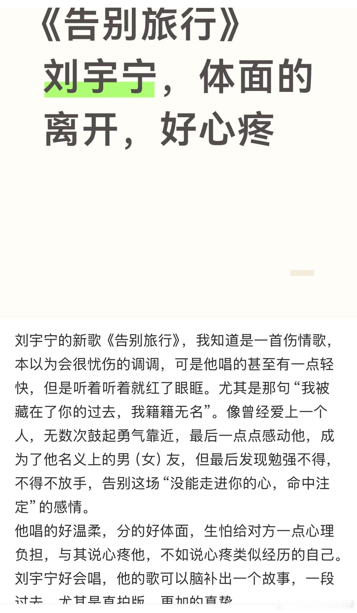 太多了刘宇宁破圈层效应真的断层top随随便便搜集了一波刘宇宁在音乐缘计划的最新歌曲【告别旅行】repo多少人今天在单曲循环这首歌曲啊