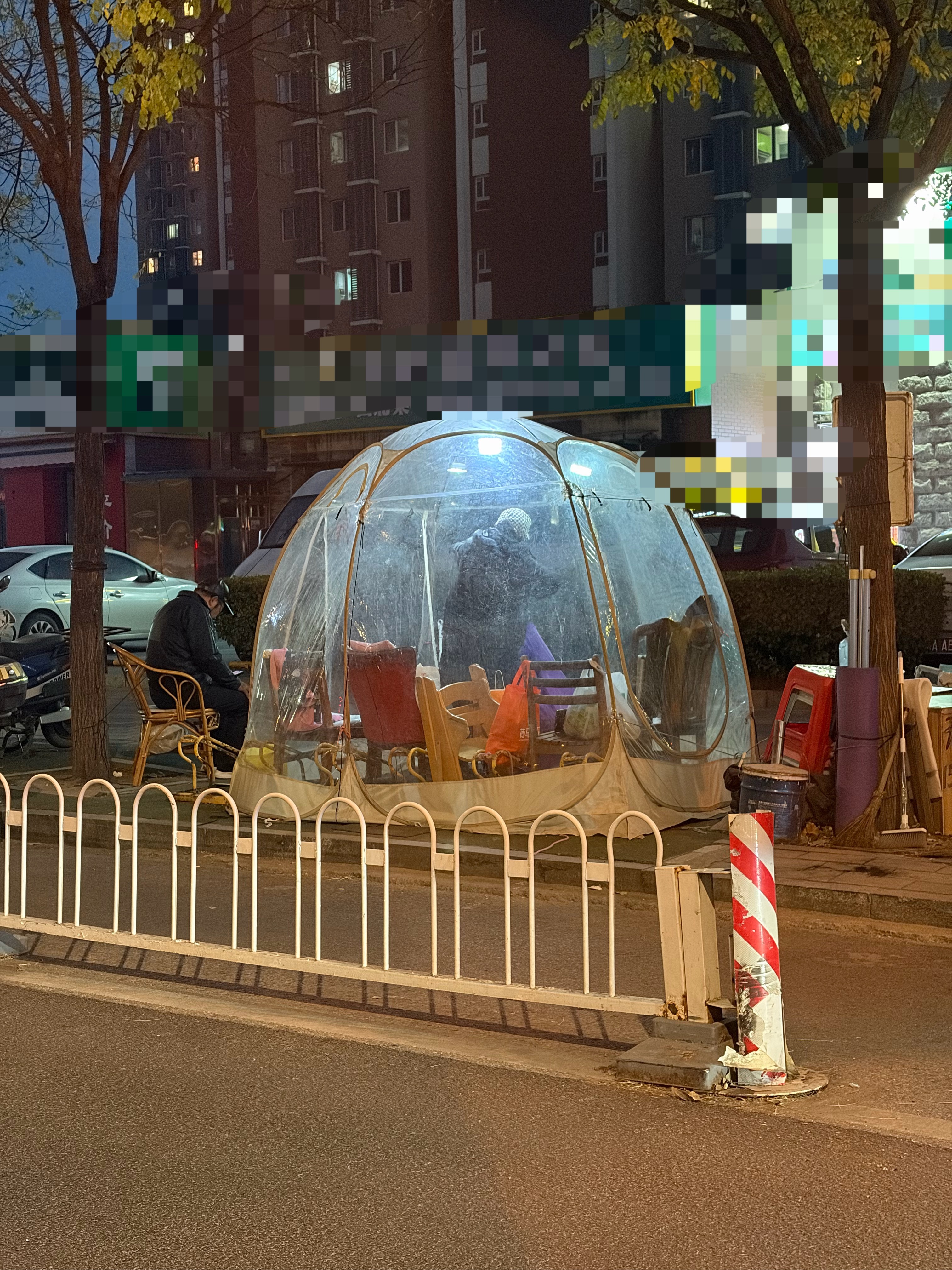 好家伙,现在路边剪发已经进化到自带帐篷了