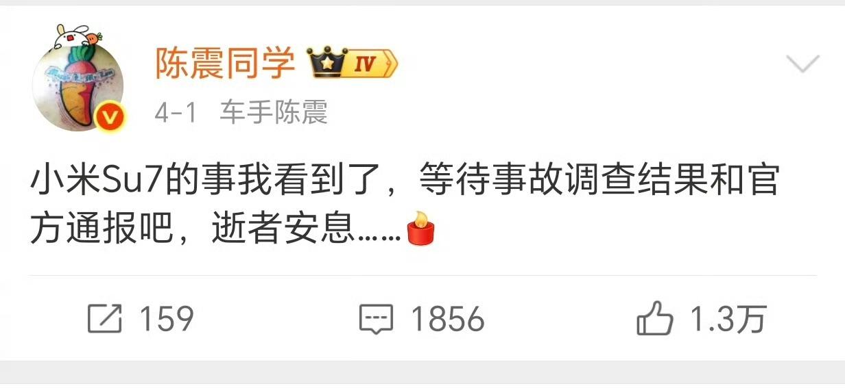 网友:小米有问题马上发视频,华为有问题,马上说等官方结果,果然是华系博主。 陈震:…… 也不知道这些网友是怎么凭空就能干出来了的这些想象的,每一次这种东西不都是等官方通报结果吗? 各位是怎么看的?欢迎评论区留言。