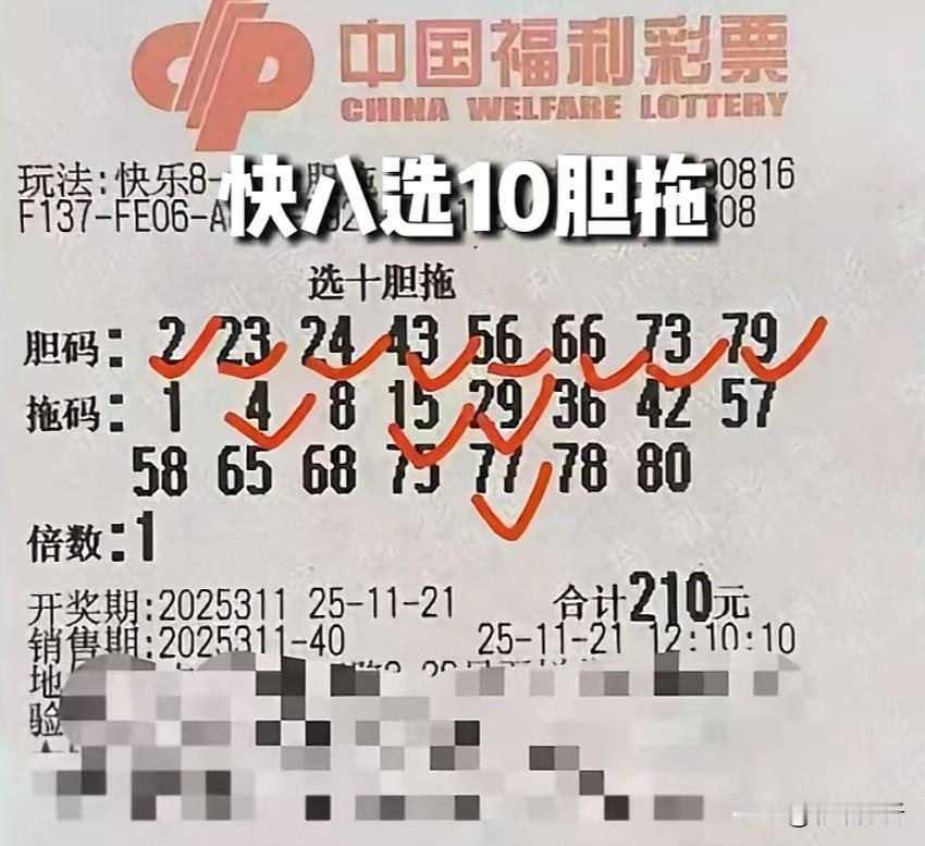 快八3000万巨奖得主水平很高:8胆15拖单票210元,关键胆码全中拿下6注头奖和44注二等奖,单票3000多万也是近期见到的最高奖[赞][赞]显然彩友没少研究号码,胆拖加起来足足23个号,走势图估计都看花眼了,这波能中大奖运气不错,换个人同样操作兴许一个号都中不了啊[捂脸][捂脸]