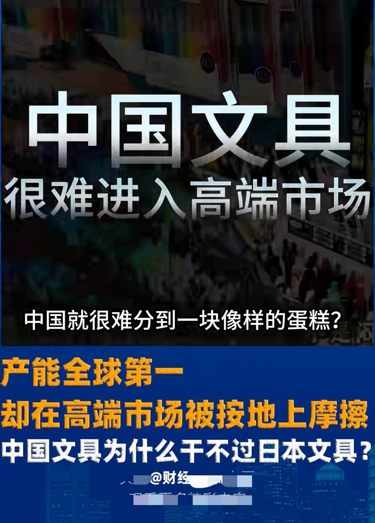 最近日吹三件套小学生放学不用接、大学生拉人力车有尊严、90岁大爷大妈打工为传承有点不够用了,不吹日本文化改吹日本文具,一个财经类账号写软文好歹挑一个高端点的领域,偏偏选一个三年级小学生都能看懂的文具,起个名字也够唬人,高端文具市场被日本品牌按在地上摩擦,这和说中国高端皮包市场被法国品牌碾压一个道理…… 14亿人口的国家,文具的第一要素是让大部分人都用得起用得上,所以国产品牌生存的重点是物美价廉,和日本品牌的初衷就不一样,拿别人的长比自己的短,不是傻就是坏。