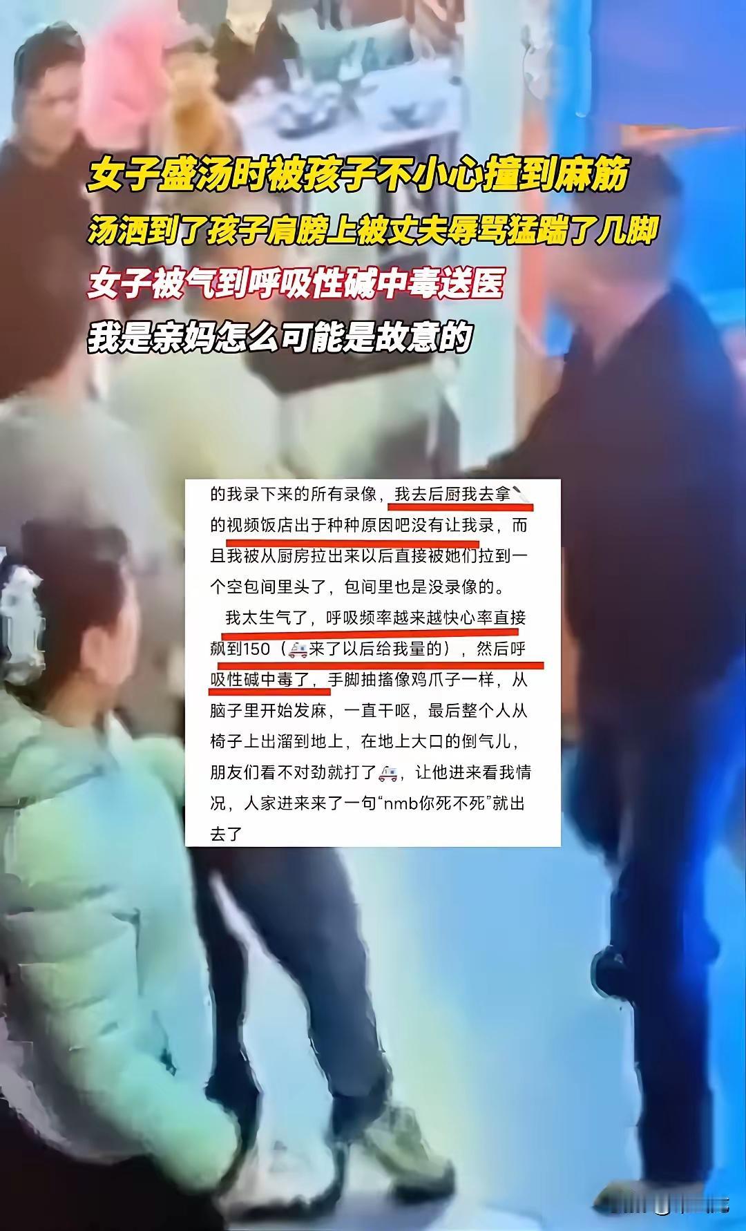 就因为妻子盛汤时被孩子撞到麻筋,不慎将汤泼到了孩子肩膀上,男子就不依不饶,一直在喋喋不休地指责妻子。妻子气不过,反驳了几句,男子暴跳如雷,当着外人的面就对妻子做出如此禽兽之事。 有网友评论: 这个男人不是人!事情出现时他应该教育儿子“你看你,因你调皮让妈妈也差点同你受伤了…”,这样儿子得到了教育,妻子也感激你的智商情商当即就平衡了事,家和万事兴。可他的兽行已经是个匪式恶魔了,好可怜的同胞哦,为保命,女子赶紧离开他! 一般没本事的男人在家打老婆,有本事的男人在外面拼事业,打架不存在的,没有什么是甩一沓钱解决不了的。 趁早离婚不然被这暴徒打死都不知怎么死的,对自已媳妇下死手肯定不是这一次,如果原谅他就是对自巳生命不负责。 脾气不好的男人或女人都是家庭不幸福的重大原因,所以恋爱时就得了解对方的品性,及时分手止损。 对此,大家怎么看?