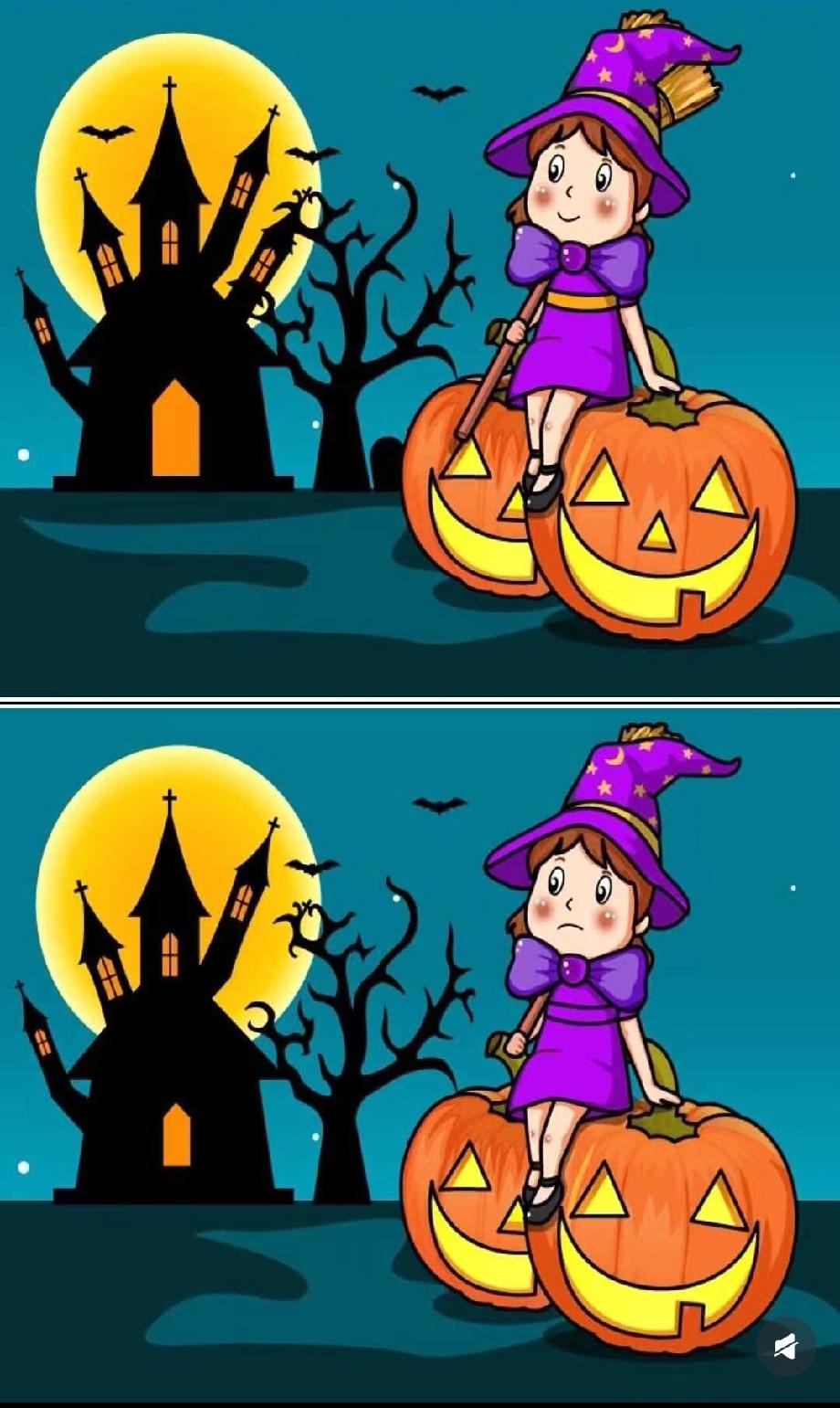 这万圣节找不同太狠了!女巫南瓜图藏了细节差,我找了5分钟只看到1处,你能全找吗?