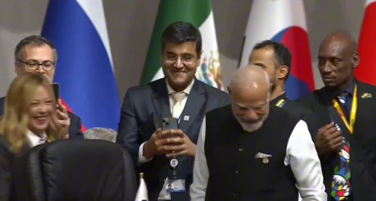 在G20峰会上!意大利总理和莫迪聊的非常投入开心! 11月22日,G20峰会在南非举行,在今天峰会正式开始之前,意大利女总理还和莫迪聊了一会,画面中,意大利女总理穿深色西装搭配白色衬衫,而莫迪穿黑色马甲搭配白色衬衫,两人在开会之前聊天非常投入,也许是很长时间没有见到过了吧,所以意大利女总理也很激动,不知道当时的莫迪和她说了什么,把意大利女总理逗笑了。不的不说莫迪还挺会聊天,记得昨天的时候,他们的战机因为一些原因在航展中坠落,不知道莫迪内心是如何做到这么平静的。