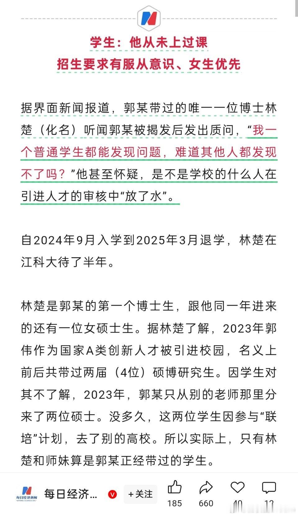 如果骗子假扮的是研究员,进实验室那天就被发现了。如果骗子假扮的是授课老师,上课那天就被发现了。如果骗子假扮的是任何干实事的人,早就被发现了 。可他假扮的是领导呀,那确实比较难发现。另外,他的招生要求也挺有意思的,要求有服从意识,女生优先。他觉得这样容易蒙混过关?