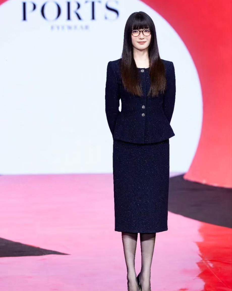 江疏影高兴的合不拢嘴了, 不是因为又接了新剧了, 也不是又接了新的商务,而是自己这次的造型上了热搜了, 黑长直的头发搭配黑框眼镜,再搭配上黑色的裙装,大家都说特别像高中英语老师, 一扫以往温婉的形象, 我感觉她这个造型一点都不好看,还是亮出来额头好看一点, 美女其实都是不需要刘海的,也有人说,有了刘海有减龄的效果,但是我觉得江疏影有了刘海反而显得很丑,遮住了她的美貌; 本来颜值是95分的,有了齐刘海之后,分数就是75分。