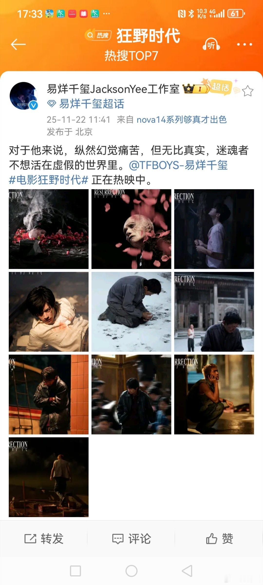 在 中,有一场吻戏😚,发生于影片“触觉篇”的1999末世废墟背景中, 饰演的角色,在黎明前夕殉情,呈现了带血的亲吻😚,时长约为30秒,实际为纯爱主题的视觉表达,两人在长镜头📽下的互动,被戛纳影评人誉为名场面,称赞“易烊千玺则以人性的精准,为影片注入了微妙的张力。” 在影片中,一人分别饰演了五个不同的角色,代表了人的五种感官,也可以说,代表了五个不同人物的五种梦境。 获得第78届戛纳电影节主竞赛单元评审团特别奖🏆! 2025年11月22日,影片在中国🇨🇳大陆公映,也将在香港、北美等地陆续上映。