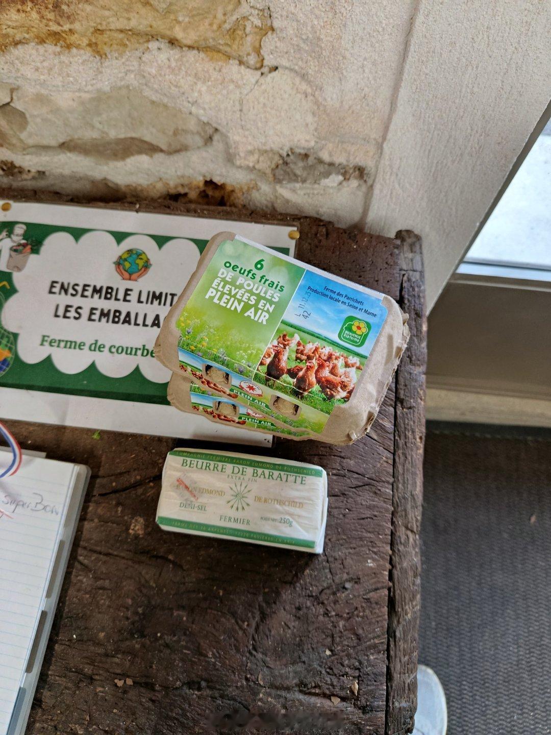 今天的巴黎格外寒冷。去了一家小小的农场,这里有自助售卖机,全天 7 天开放。里面摆着各类新鲜蔬菜、水果和乳制品,产品都是附近几个农场自产的。这次买了几枚农场鸡蛋,还有一块我最喜欢的——咸味黄油。不得不说,我就是偏爱那一口带点盐分的醇香。