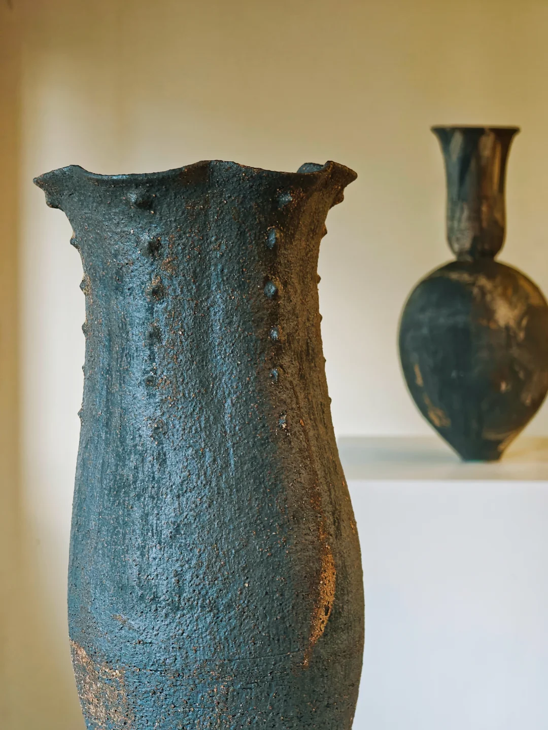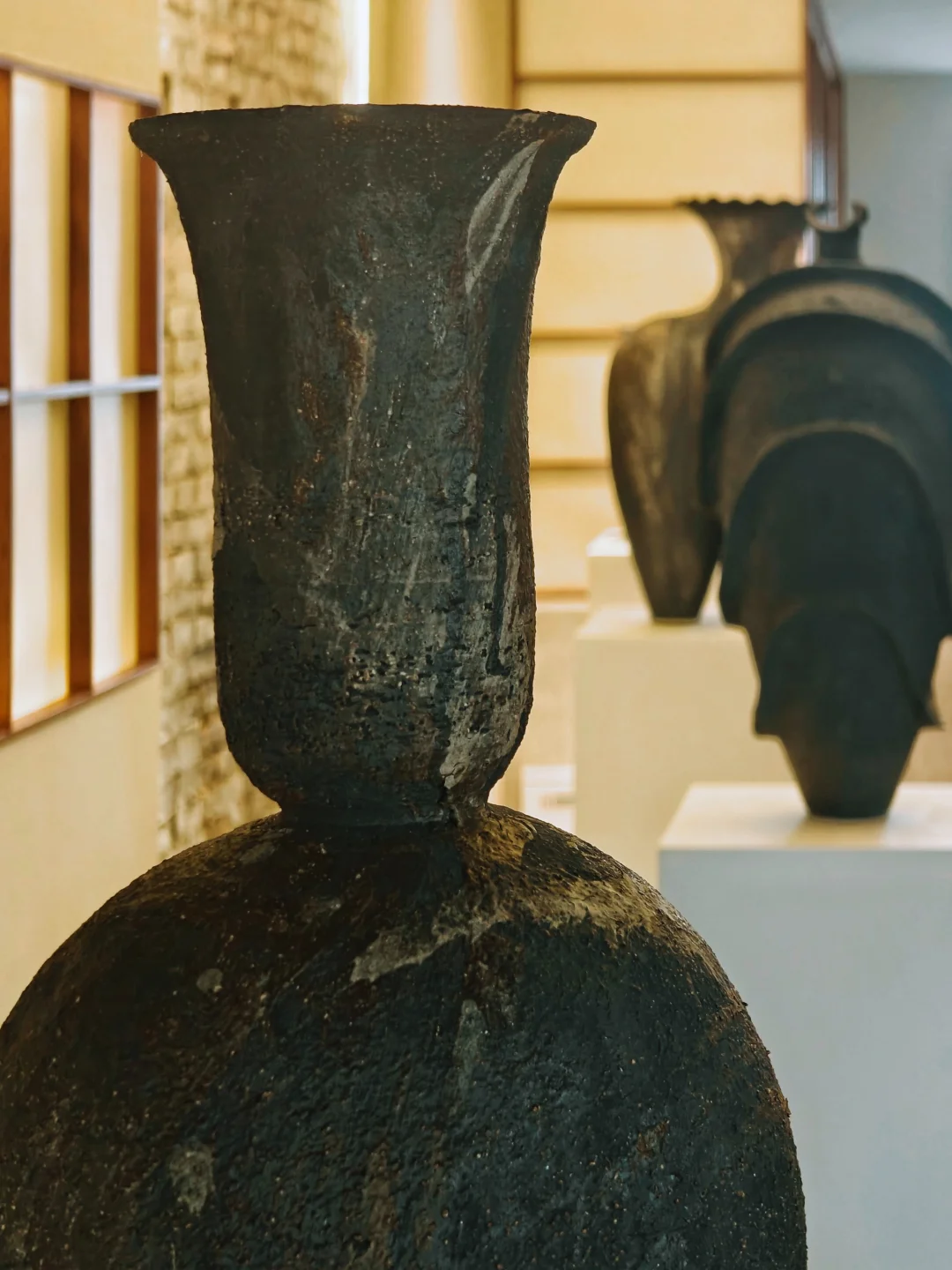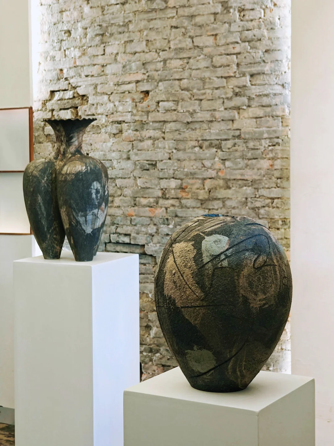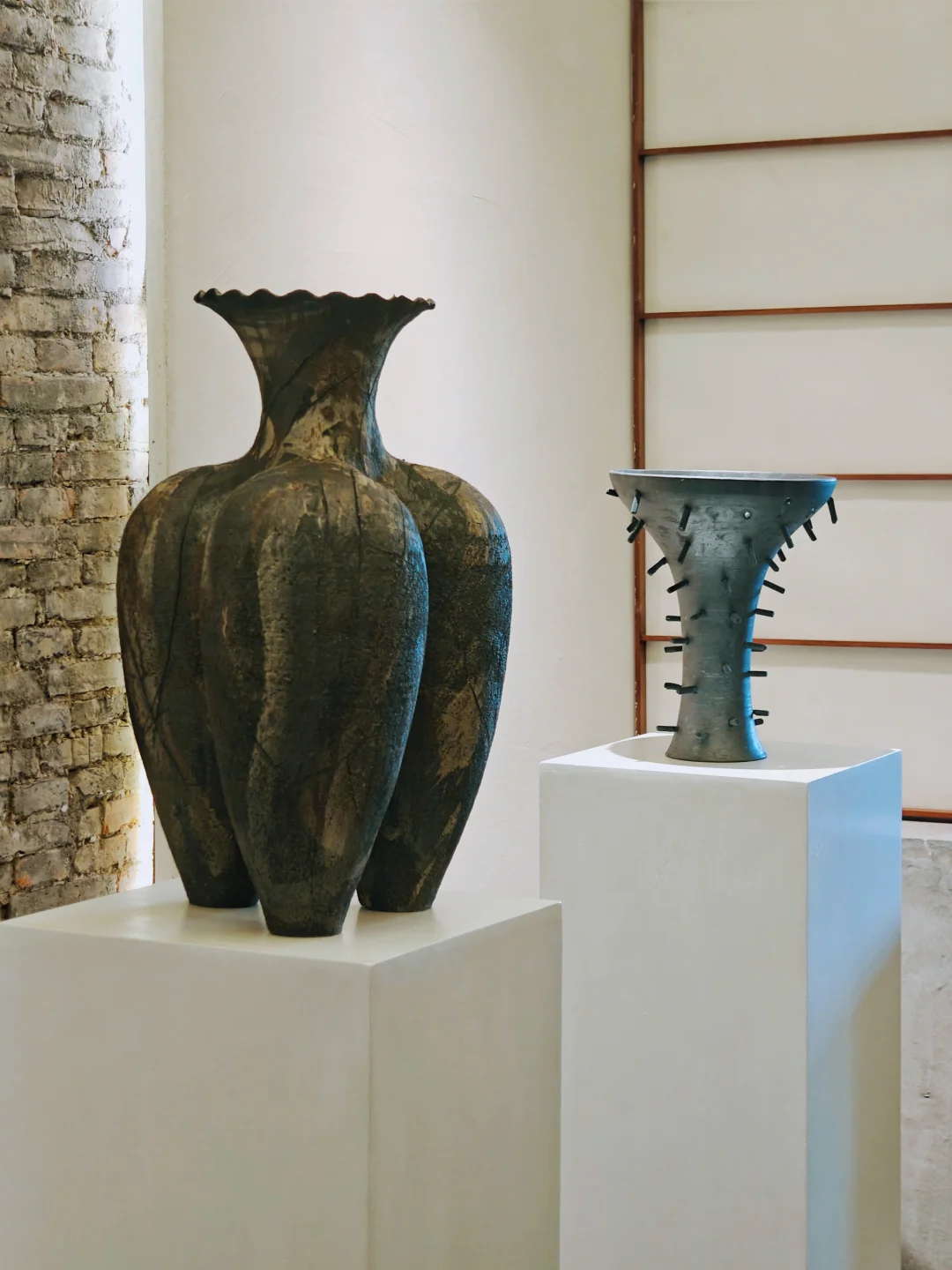 压境之物 📆9/15🔚 🕙周二-周六 13:00-18:00 📍Keraforma 延庆路4弄30号303室 👉它家的小🍊xu上线了,🐟约更方便啦~ 👨🏻‍🎨涵喬 🏺黑陶搭配金属钉、彩色化妆土、氧化釉或陶泥浆,部分故意裸露陶土本体。 🏺有些器物上​断裂后重新拼接的痕迹,并非瑕疵,艺术家故意不掩饰“破损”,将其作为器物记忆的一部分。 🏺这些作品自带“密度感”,仿佛吸收了超限度的热度、张力与时间,能量既扎根土地又处于临界边缘,既是“容器”也是“带电、紧绷、如临战场的身体”。 🏺这些作品的形态给人一种祖先遗物的感觉,庄严肃穆;既抚慰又防御的矛盾感,构成作品不安却优雅的气质。同时又蕴含工业锋芒,像过去与未来的交汇点,黑陶的“黑”是历史、张力、存在的“压缩”,而非虚无。 🏺个人喜欢门口的“双胞胎”,C位的“海浪瓶”,窗边的“⽓球瓶”,楼梯旁的“章鱼”。 💗关注我,每天带你免费看展💗