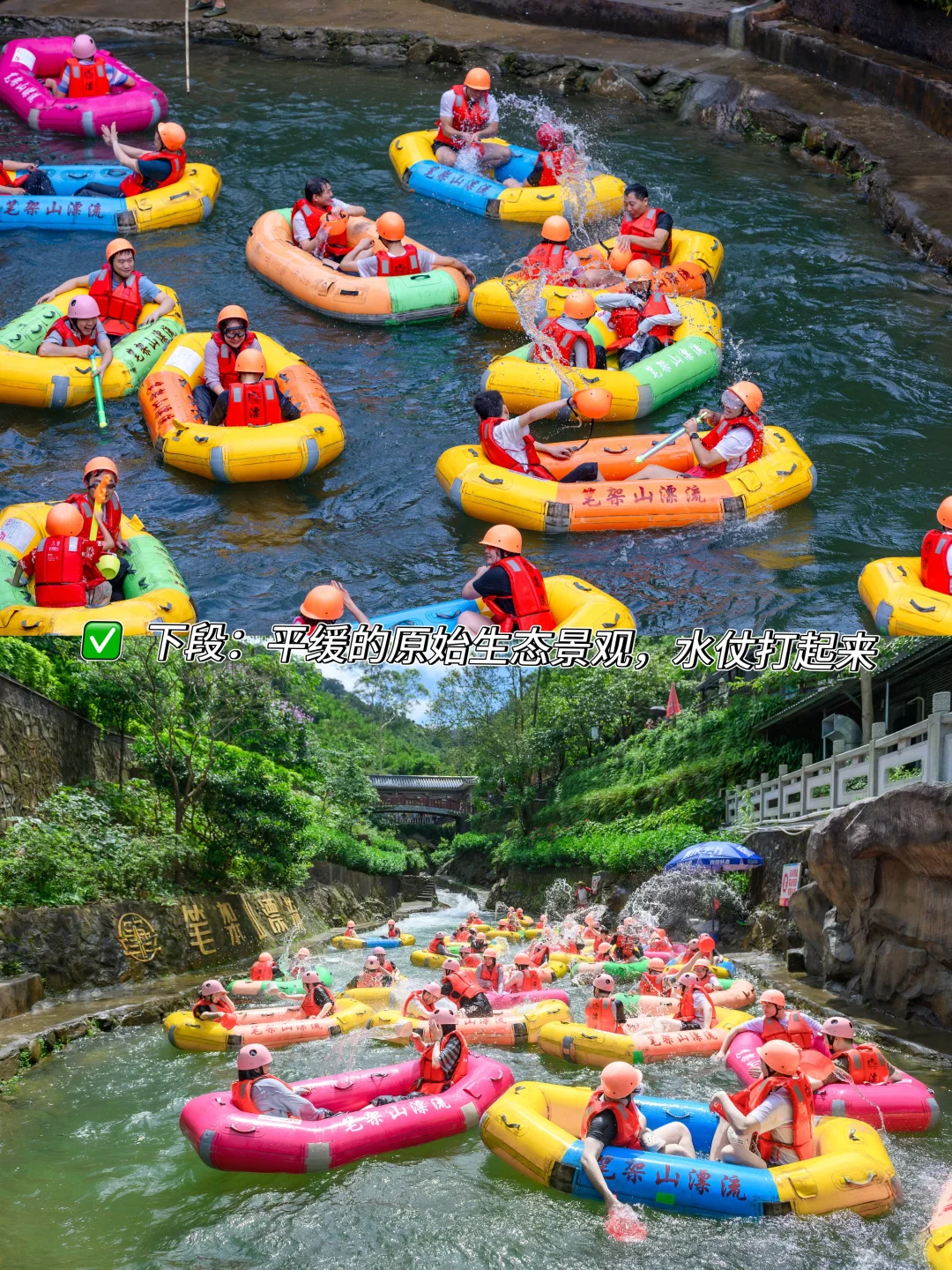 第一次漂流怕翻船?怕太刺激吓哭?怕全程只顾着尖叫没时间玩?听我的!选清远笔架山青龙峡漂流就对了,亲测新手友好到想二刷! ⚠️像我一样的新手是否有以下顾虑,且听我一一道来: 1️⃣怕落差太猛心脏受不了? ✅ 笔架山总落差130米,但像拆成了130多个“小惊喜”!最高12米的那个坡看着唬人,冲下去其实是被浪花裹着往前跑,尖叫到一半就笑出声,刺激但完全不吓人~ 2️⃣怕全程只顾着抓船桨,没空看风景? ✅三段河道设计太懂新手了!上段穿丛林冲小坡,风声水声混着笑声超解压;中段钻七彩幻洞,光影晃得像在梦游;下段直接停在平缓区打水仗,抬头就是青山绿水,人在风景中~ 3️⃣怕没人管,翻船了喊破喉咙没人应? ✅翻船?不存在的。安全员比男朋友还靠谱!每隔几十米就有个大哥守着,安全感直接拉满! 新手党实测体验感(真实到像在你耳边说) 😂刚上船时我抓着船桨手都抖,结果第一个小坡下来,同行的姐妹就喊“再来一个!” 全程30多分钟,从紧张到疯玩只用了5分钟——反正大家都在泼水,湿身了更疯,不认识的船靠近就开战,夏天的快乐就是这么简单! 🚗交通也巨方便,广州自驾1.5小时直达,下了高速没一会儿就钻进山林里,市区出发当天来回完全OK~ 第一次漂流选对地方,真的会打开新世界!笔架山这种“刺激得刚刚好,快乐得很彻底”的体验,新手闭眼冲都不亏!