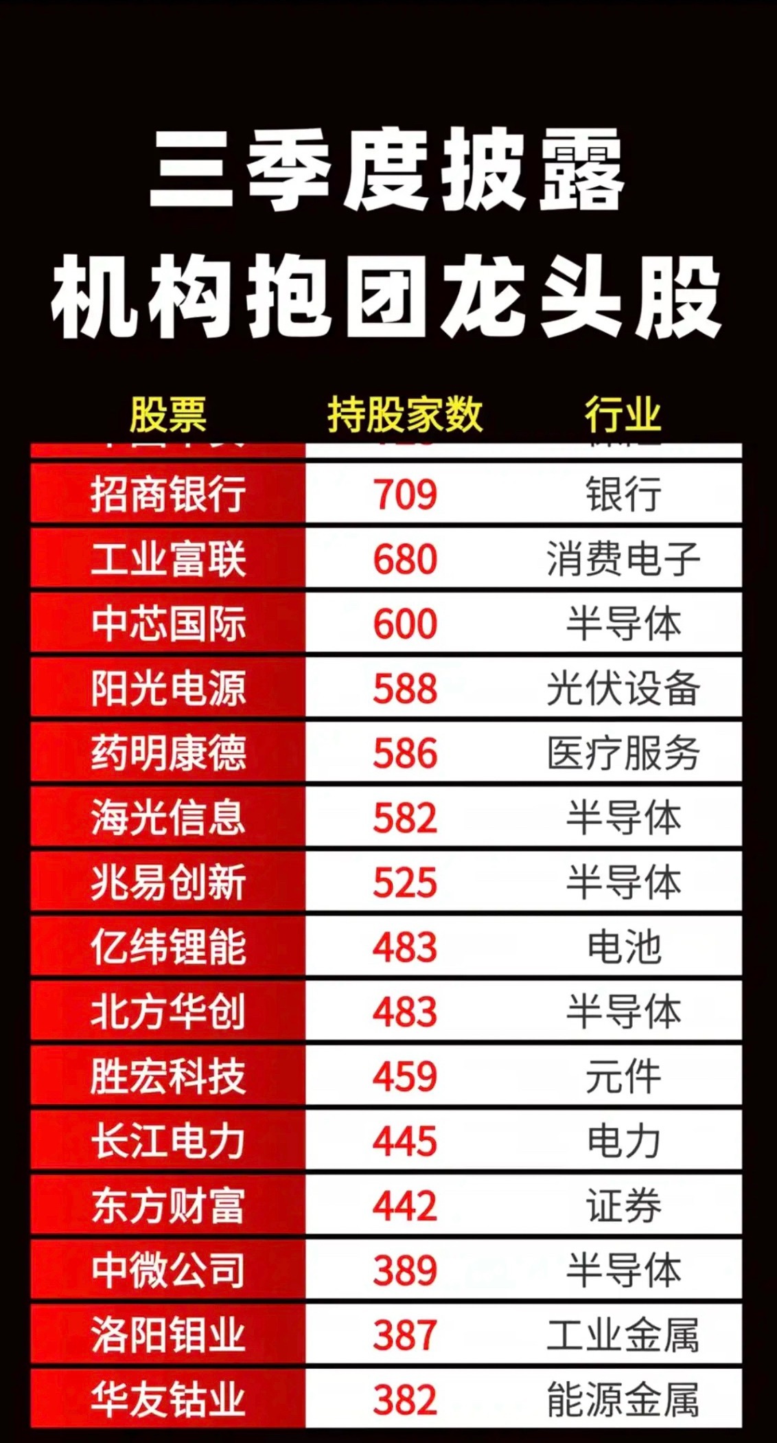 三季度末披露:机构抱团 龙头股!最高的有2152家机构报团,太多了吧!