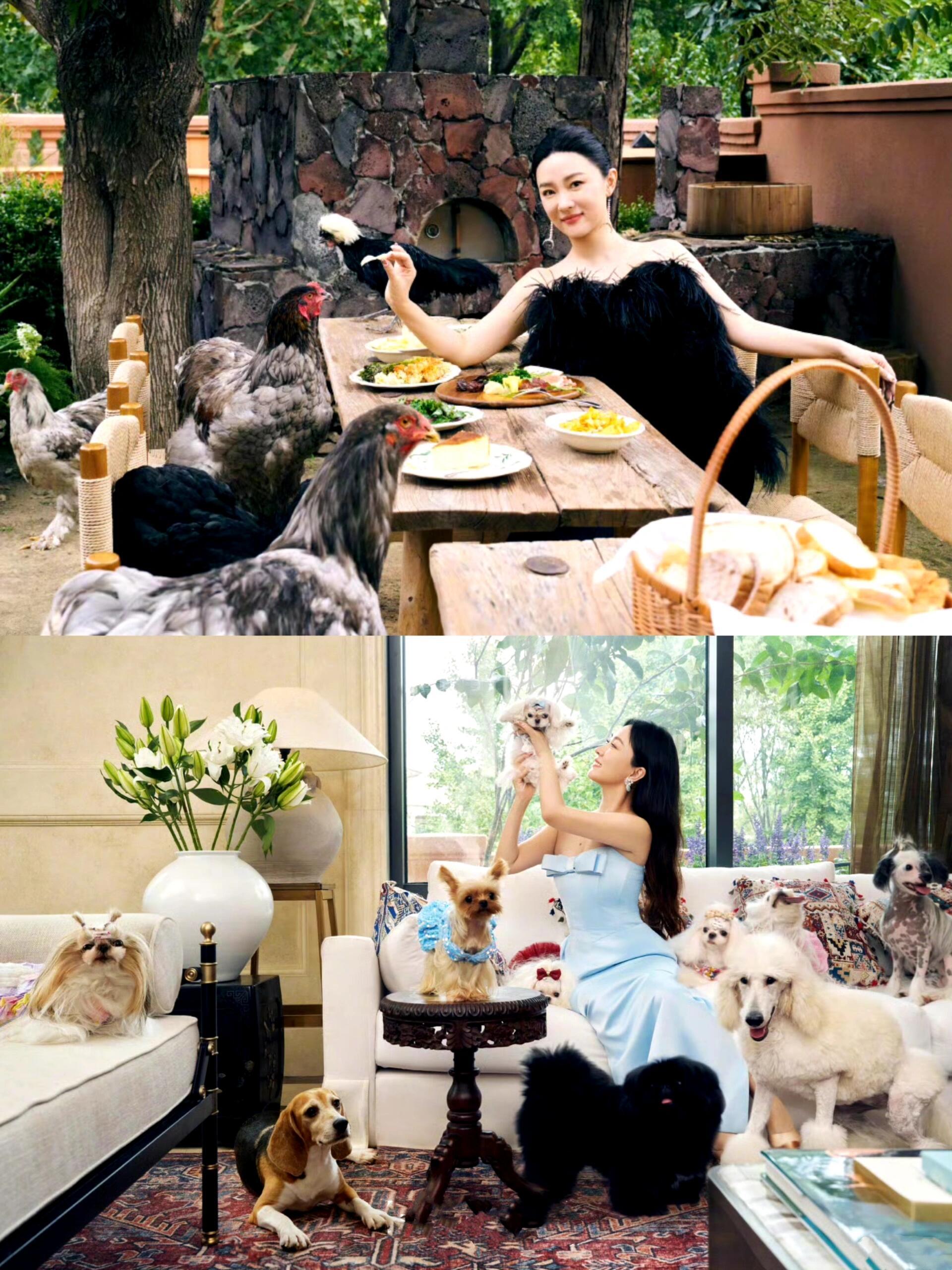 霍思燕有点李湘那味了,家里有一个动物园还有满院子的花草,早早的就开始享受生活。现在的她,43岁半退休的贵气松弛状态,和李湘的享福模式简直是异曲同工。