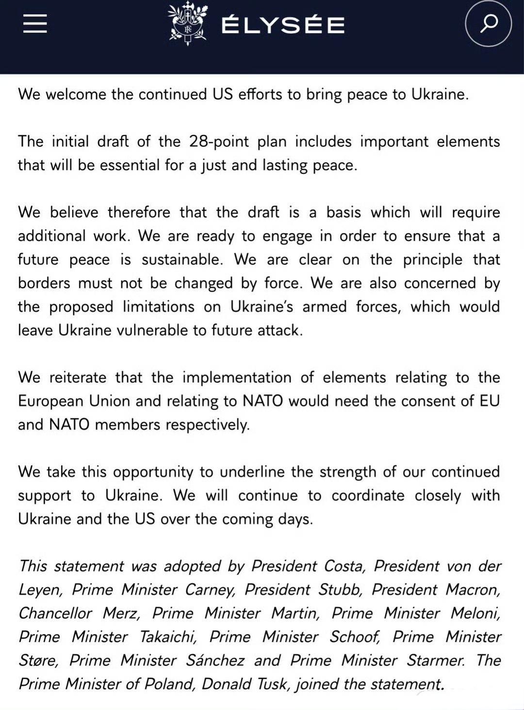 德国《图片报》说欧洲拒绝了28条,但实际上,英法德意波芬荷西挪日加十一国的联合声