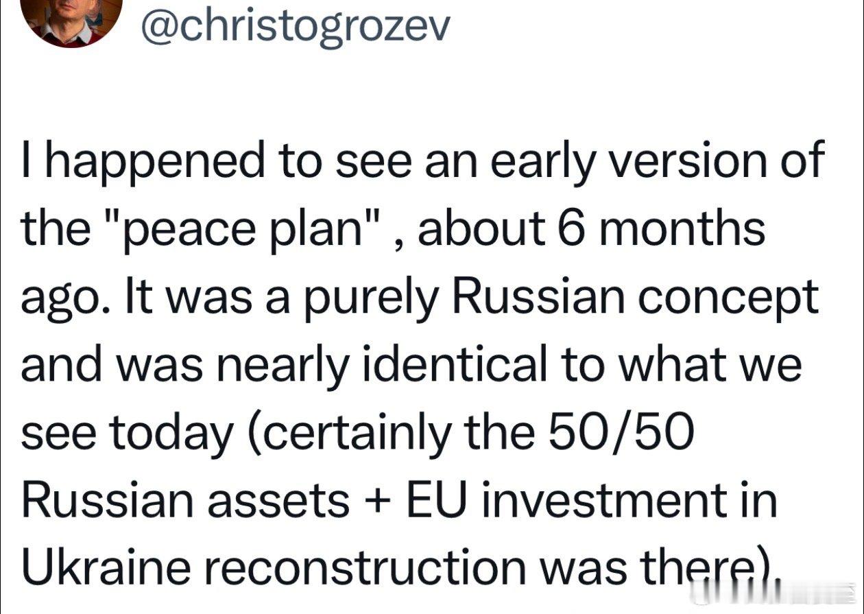 欧洲调查记者:大约六个月前,我有机会见到一份“和平计划”的初稿,纯粹是俄方提出的概念、几乎和我们现在看到的这份一样📃