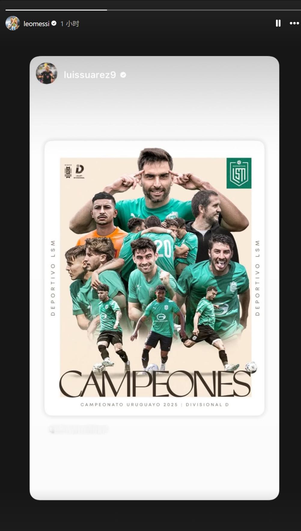 梅西更新INS由梅西和苏亚雷斯共同创立的Deportivo LSM队,成功赢得乌拉圭第四级别联赛冠军。这支球队创立还不到一年,就实现了队史首个冠军!