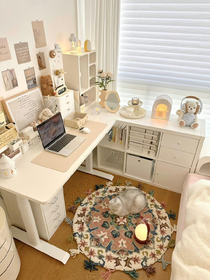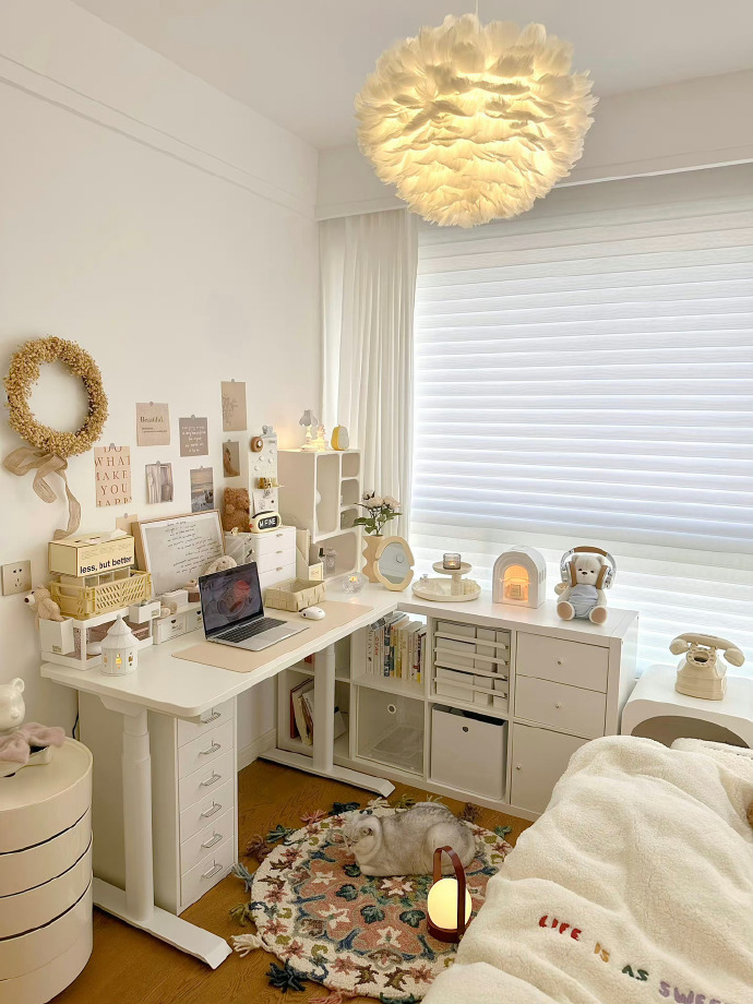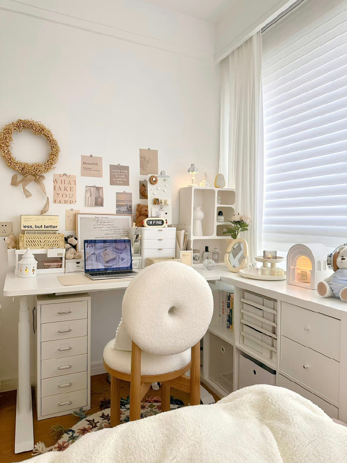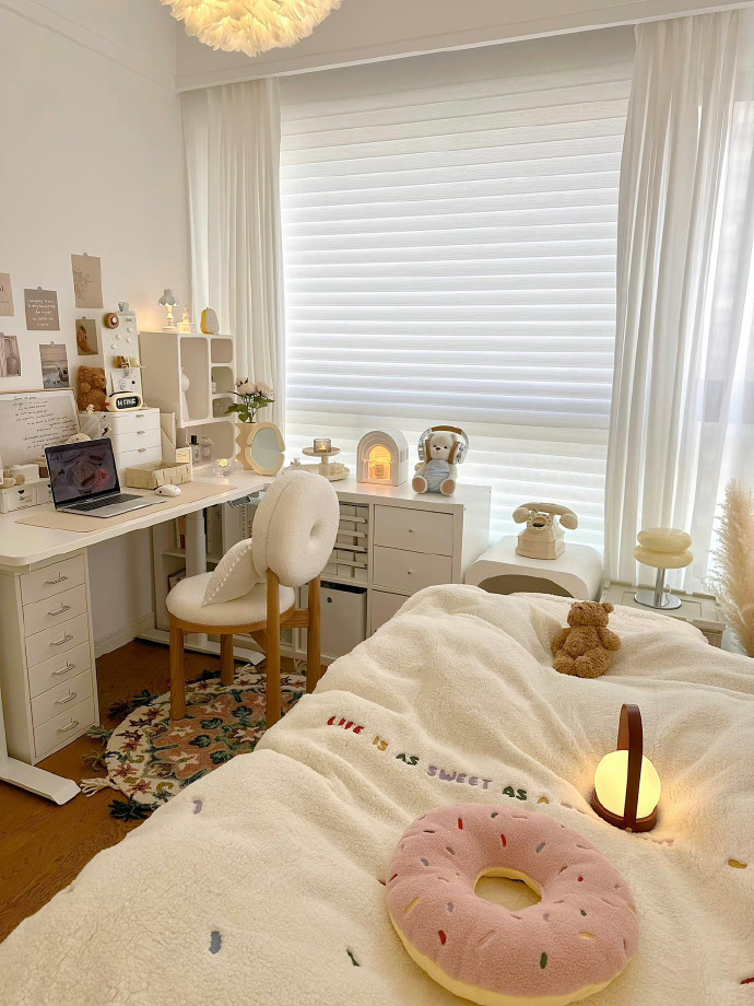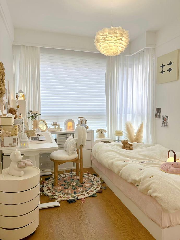 8㎡全包围奶油ins风卧室📝 落地窗书桌的快乐