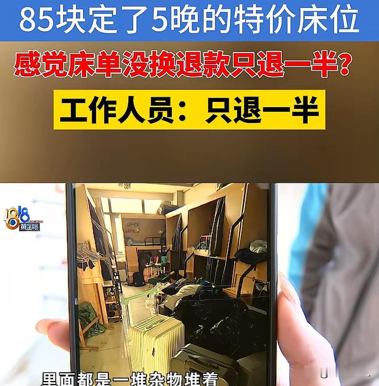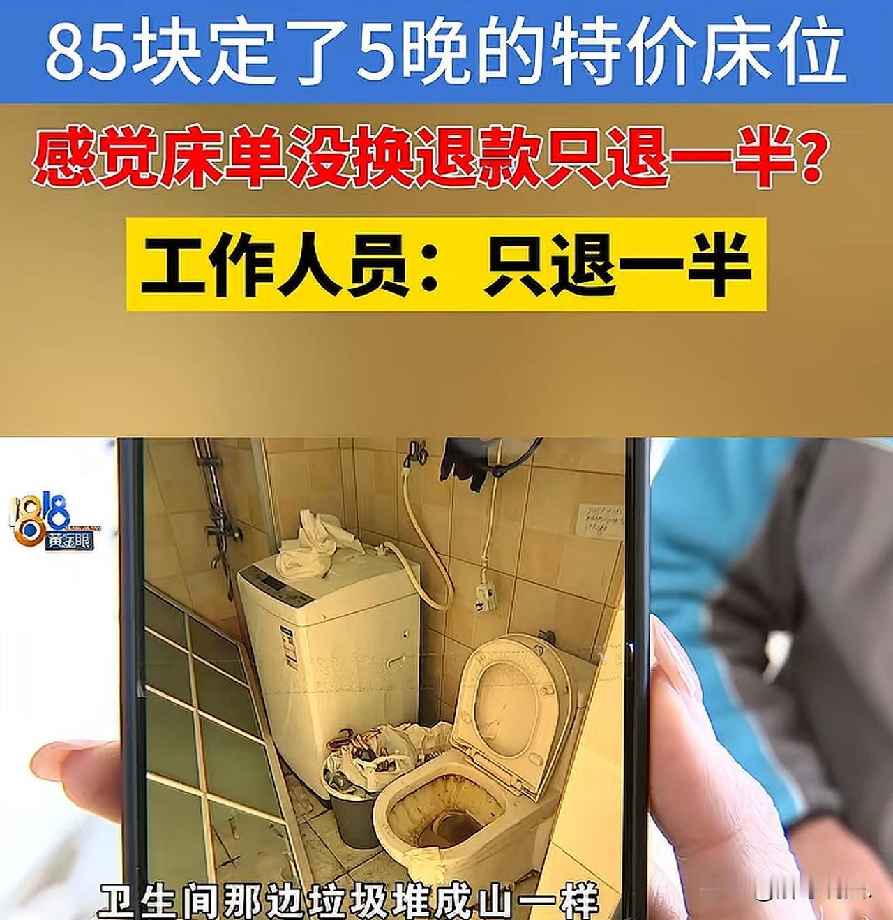 浙江杭州,男子是一名试药员,他从老家来到杭州一家医院参加新药临床试验,因院方不提供住宿,于是,自己在网上一家客栈预定了5晚,花了85.45元,可男子抵达客栈后,发现床铺连床单都没换,环境又脏又乱。男子要求退房退款,可客栈连个前台也没有,发信息也不回,和平台一番沟通后,平台说男子已经办理了入住,最终只退了一半42.7元。男子委屈不已,自己就进去看看,凭什么说自己办理了入住? 张先生是一名试药员,面对记者采访时,穿着旧工作服,非常简朴。 他眉头紧锁,愁容展,向记者讲述自己遇到的一件麻烦事。 张先生是河南信阳的,这次来到杭州,是参加萧山医院的一项新药临床试验。 众所周知,新药上市前需要经过临床试验这道关,他作为试药员,要在医院配合完成相关流程。 可临床试验有段空窗期医院不提供住宿,他只能自己找地方住。 张先生没啥特殊要求,觉得只要能住得下、凑活几天就行。 于是,他在美团平台上一家客栈,预定了特价床位房。 入住时间是11月18号到23号,一共5晚,总价才85.45元。 11月18号下午两点多,张先生按照订单上的地址,找到了这家客栈。 结果,上去一看才发现,房间里是隔出来的格子间,里面摆着六七张床,到处堆着一堆一堆的杂物、垃圾,非常脏乱,根本无法下脚,更别说居住了。 虽然环境和张先生预想的差很多,但是他决定硬着头皮住下来。 可接下来,他遇到了头疼事。 按理说,住床位房都是商家指定铺位,每个床铺都应该有编号。可商家却没告知,他不知道该睡哪张床铺了。 让他崩溃的是这里压根没有前台,都不知道上哪咨询去? 无奈之下,他赶紧按照订单上的联系方式给商家打电话,结果电话通了却一直没人接,发消息也没回。 张先生想着可能商家暂时没看到,就站在房间里等着,这一等就等到了下午3点,终于,商家回复了一句“空铺就可以”。 可看着那些没换过的床单被褥,上面还沾着不明污渍,张先生实在躺不下去,其它都可以不计较,被褥总要干净些吧?他认为自己已经把要求降到最低点了。 于是,他又给商家发消息,问床单什么时候换?商家回复,下午会有人过来处理。 可张先生追问具体要弄到什么时候,商家又没了音讯。 张先生一直等到快下午4点,还是没人来处理床单,也没人跟他对接入住事宜,商家更是彻底失联了。 张先生实在耗不下去了,决定重新找地方住。 离开客栈后,张先生赶紧联系美团平台,退房退款。 结果打电话过去,回复的全是机器人语音,根本找不到人工客服:他在线等了60多分钟,终于,收到有人工客服回复。 对方的回复却让他心底一沉,说他的订单已经超过了规定时间,属于违约,要扣除罚金。 张先生懵了,自己压根就没办理入住,怎么就违约了? 张先生和客服一番沟通,客服从之前提出的退还30%的房费,要扣除70%作为违约金,松了口,同意退还50%的房费。 最终,张先生收到了42.7元的退款。 张先生不能接受这个结果,他再次联系商家讨要说法,可发现商家拒绝接受他的消息。 无奈之下,张先生决定联系媒体帮忙。 记者了解到情况后,拨通了商家的电话号码。 商家却把责任推给了平台,让张先生去问美团客服。 记者追问,订单上明明写着6点前可以免费退,为什么现在不能全额退? 商家一口咬定,张先生已经办理入住,就退不了! 可当记者追问:怎么算办理入住?商家又说不清楚,只含糊其辞。 记者还问到,客栈为什么没有前台,商家也没给出明确答复。 之后,记者又联系上了美团平台,平台客服表示,张先生的订单显示“已入住”,而且已经过了免费退款的时限,所以不能全额退款。 张先生反驳说,他根本没有实质性入住,既没登记身份信息,也没使用床铺,只是进房间看了一眼,怎么就算入住了? 客服也承认知道张先生没真正入住,但声称“酒店已经为他留了房间”,所以必须扣除部分费用。 然而,张先生根本不能接受这个说法。 最后,迫于媒体的压力,平台终于将扣下的42.7元返还给张先生。 《民法典》第577条,当事人一方不履行合同义务或者履行合同义务不符合约定的,应当承担继续履行、采取补救措施或者赔偿损失等违约责任。 张先生与彩虹客栈通过美团平台订立住宿服务合同,客栈核心义务是提供符合卫生标准、具备基本居住条件的住宿环境及规范的入住服务。 但客栈无前台、卫生条件严重不达标,且未按约定提供铺位分配、床单更换等基础服务,已构成违约,张先生有权要求退款。