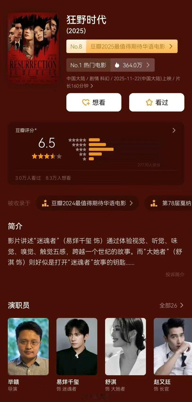 拒绝被定义!《狂野时代》的6.5分,恰恰证明了 的勇敢与远见。? 他完全跳出了舒适区,用五个截然不同的角色交出了一份作为演员的满分答卷。正如李安导演所说,这是“追梦的优秀演员”他值得!?
