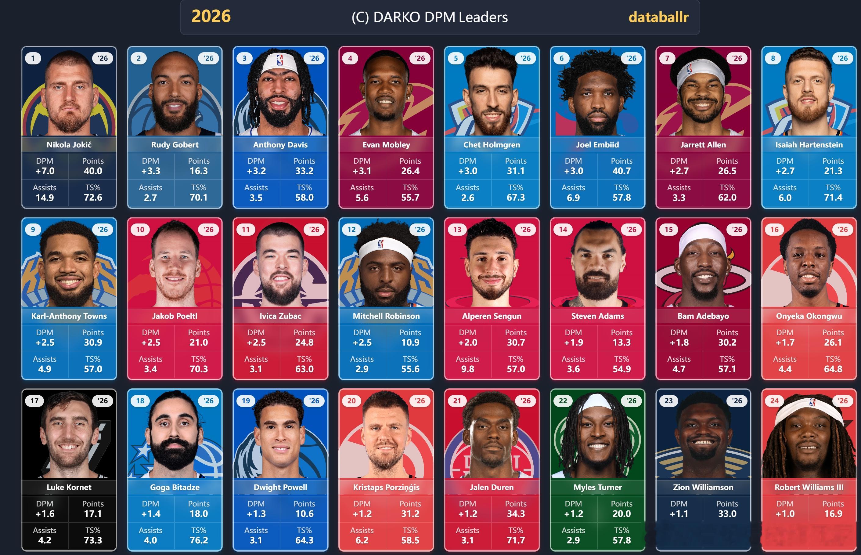 约基奇悄咪咪,又打出一个震古烁今的赛季……——29.5分,联盟第七——13篮板,