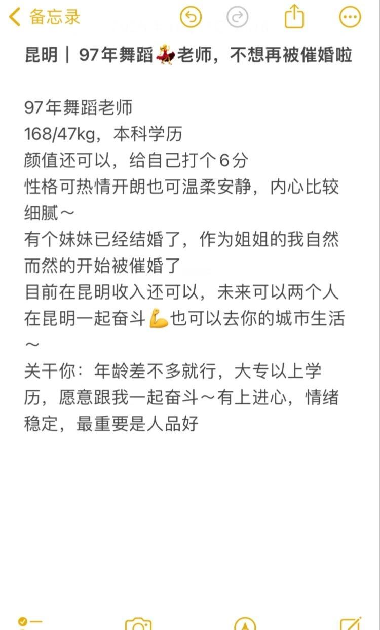 昆明|97年舞蹈老师 不想被催婚啦 97年昆明舞蹈💃老师真的不想被家里催婚了……征婚 分配对象 相亲交友 想谈恋爱 奔着结婚找对象 相亲 昆明 (非本人征婚 女嘉宾身份已核实)