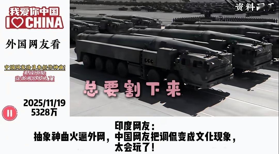 太有才了! 近期中国网友的神作《割脑袋》,以幽默诙谐的方式回怼日本不当言论。 你最近有没有听过这首歌? 这首嘲讽日本近期不当言论的神曲《割脑袋》,在海外平台强势出圈,让全世界见识到中国网友的“花式反击”! 歌词:割,啊割,啊割脑袋,伸过来的脑袋总要割下来。排队割脑袋,割够一麻袋,越割越开心,越割越上瘾。 割,啊割,啊割脑袋,小柜子的脑袋总要割下来。不割就使坏,使坏割脑袋,割完说拜拜,再留下个小男孩……画面停留在原子弹爆炸瞬间。 这首歌没有硬刚的戾气,全靠幽默诙谐的表达戳穿本质。直白的歌词,精准的吐槽,魔性的节奏一听就让人上头。 不得不说中国网友是真的很有才!总是能把心中的不满化作创意,用轻松方式自己的传递立场。 建议大家有空的时候再去听一下《腾冲风骨》也是一位有才的网友写的。超燃!
