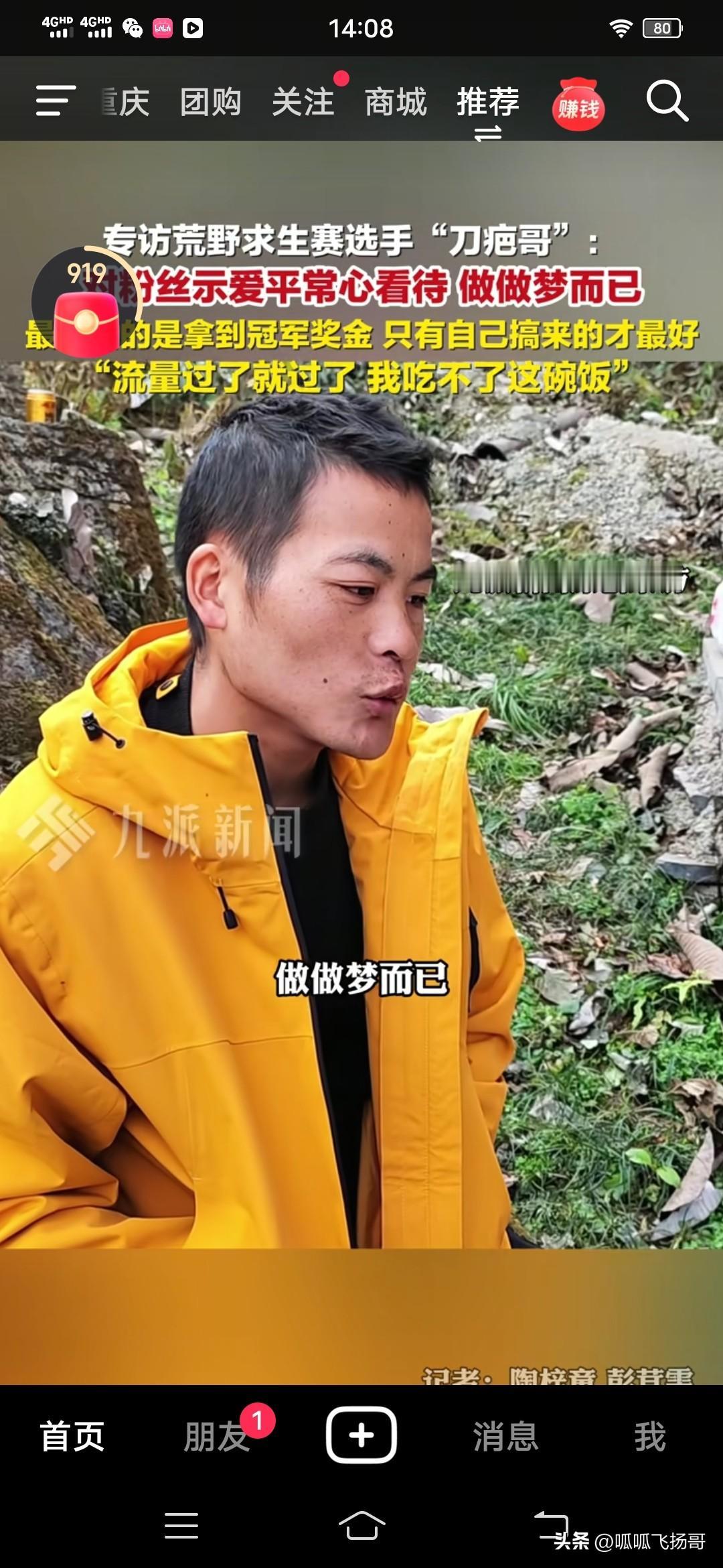 荒野求生刀疤哥赚不了认知以外的钱,朴实的农民本色真让人刮目相看 。 刀疤哥坦言参加荒野求生就是冲冠军奖20万来的, 在外打工一年也才挣两三万,20万够挣几年了 , 诱惑确实大 。 没想到参加荒野求生自己火了,不知道怎么火的 。 对于有一位女粉丝主动追求他,要做他的老婆,刀疤哥笑笑说, 不敢想, 平常心对待 ,自己做做梦就行了。 流量对他来说并不重要, 热度过去,过了就过了,无关紧要,我吃不了这碗饭 , 要靠自己的能力挣钱才重要。 刀疤哥真是人间清醒 , 知道热度是暂时的,热度一过任何人都会回归本色, 自己适合什么就做什么,不适合自己的没必要去做。