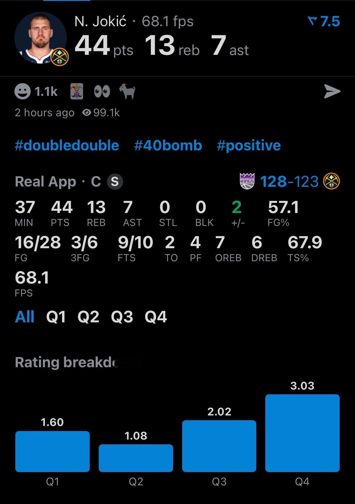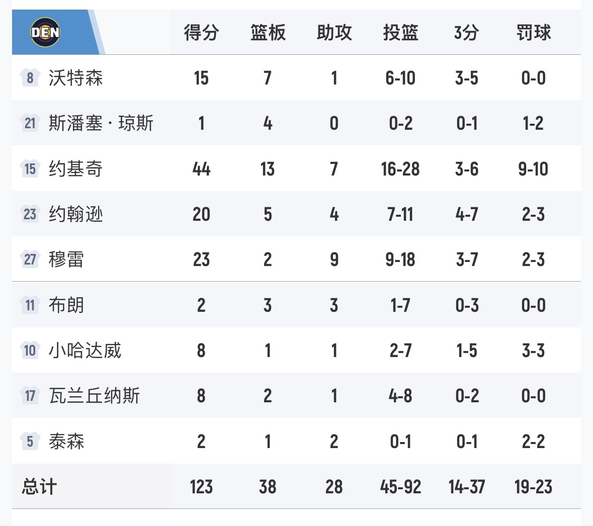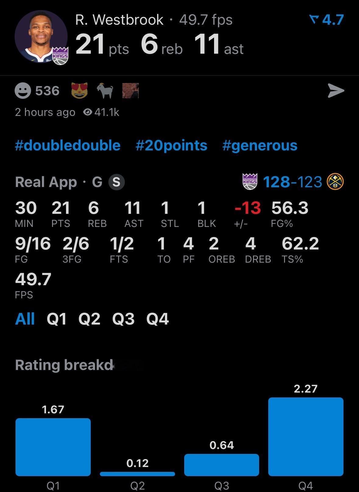 国王客场击败掘金,终结了自己的8连败!威少21分6板11助攻1失误约基奇44分13板7助攻