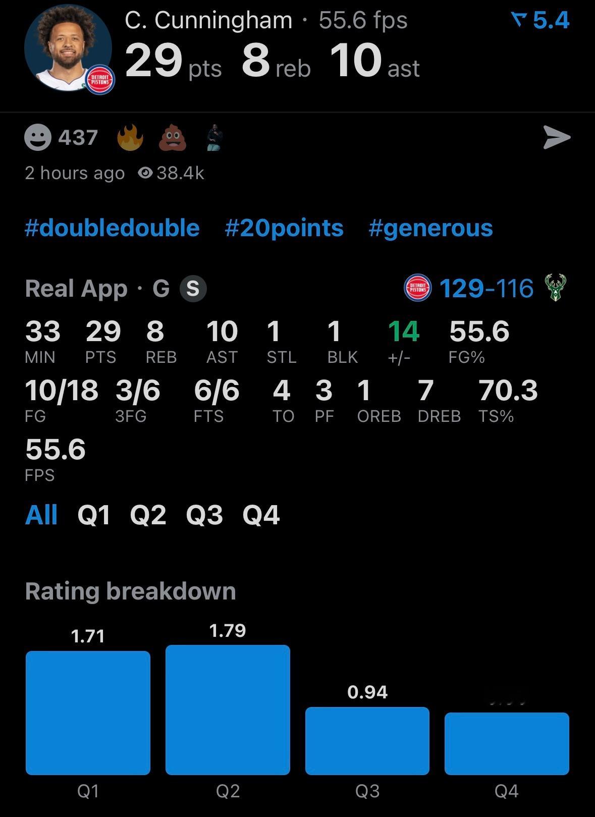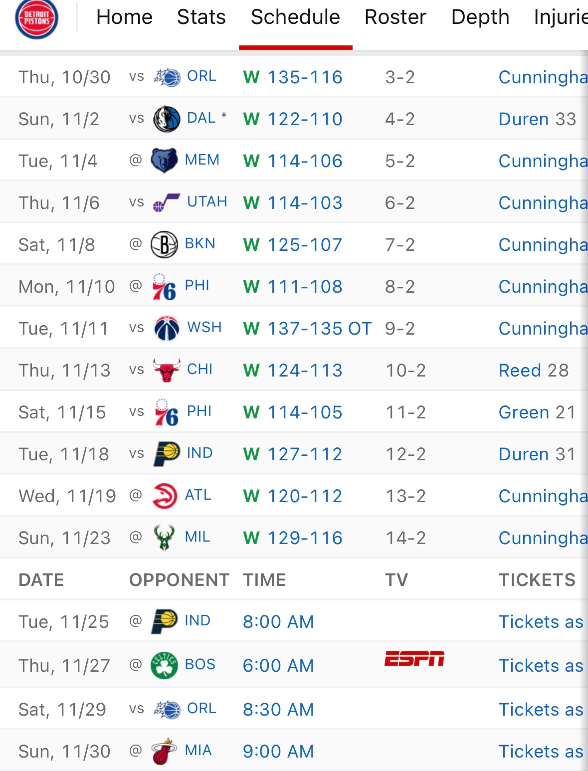 活塞129-116击败雄鹿,活塞目前已经12连胜。坎宁安29分8板10助攻,罗林